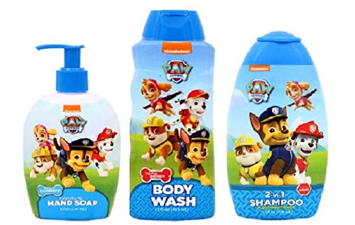 Studio : Blue Cross laboratories,Inc Publisher : Blue Cross laboratories,Inc Binding : Misc. Product Description Three piece set of Paw Patrol Soaps, includes One 10 fl oz 2-in-1 Shampoo Pup Pup Berry Scent One 12 oz Body Wash Pup Pup Berry Scent One 8 oz Pump Hand Soap Pup Pup Raspberry Scent 0