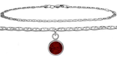 -. Title : 10K White Gold Mariner Anklet with Genuine Garnet Round Charm