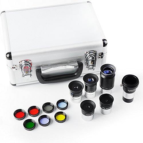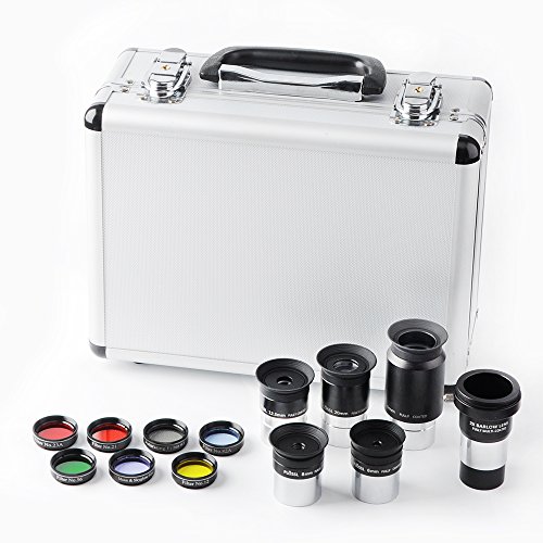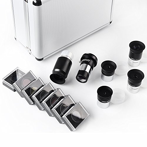Solomark 1.25-Inch Telescope Eyepiece and Filter Set - Telescope Accessory Kit (Silver) - 5pcs Plossl Eyepiece Set, 7pcs Filter Set, 2x Barlow Lens