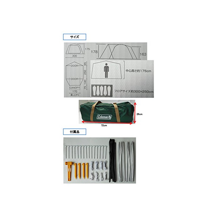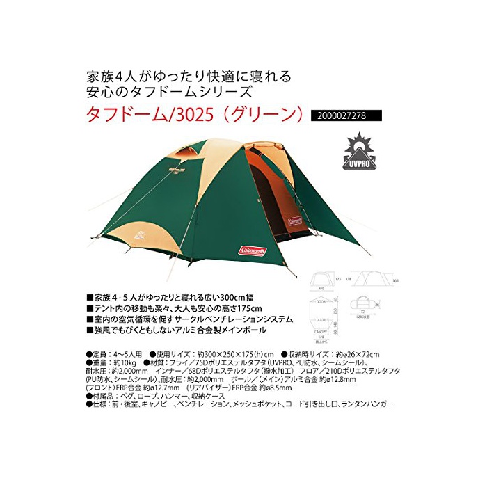 원본상품명: コルマン テント タフドム/3025 グリン [4~5人用] 2000027278