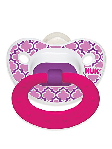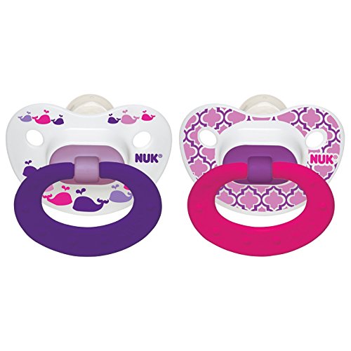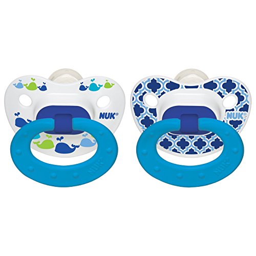 -. Binding : Baby Product -. Brand : NUK -. Feature : Marrakesh & Whales Pacifier Comes in a Pack of 2 and Features Adorable Exotic P.R.Ints / NUK Orthodontic shape nipple soothes and calms baby better than our original nipple and its asymmetrical shape helps promote healthy oral development by naturally fitting into your baby's palate / Scoop nipple cavity allows maximum tongue movement, which gently exercises your baby's tongue, palate and jaw and promotes proper teeth alignment by helping your baby avoid thumb-sucking / Orthodontic nipple promotes healthy oral development; Promotes proper teeth alignment by avoiding thumb-sucking; Heart-shaped shield fits under baby's nose for extra comfort / BPA free with Silicone Nipple -. Label : NUK -. Manufacturer : NUK -. ProductGroup : Baby Product -. ProductTypeName : BABY_PRODUCT -. Publisher : NUK -. Studio : NUK -. Title : NUK Marrakesh & Whales Puller Pacifier, 18-36 Months