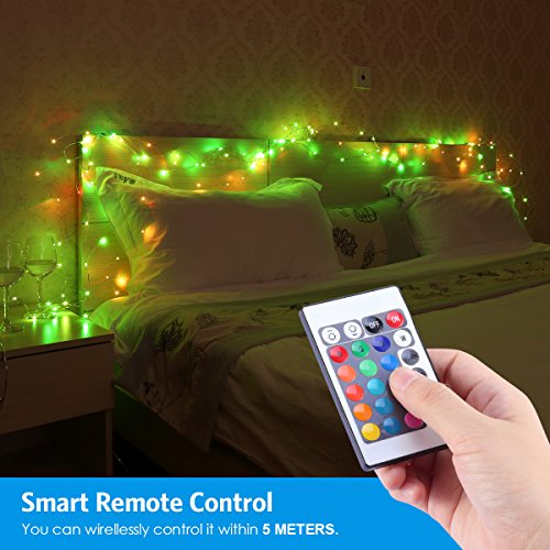 AMIR LED String Lights, 50 LED/16.4ft With Battery Operated Remote Control super brighter Lights, Waterproof IP65, 16 Colors Decorative Lights for Outdoor Parties Christmas (Low voltage, Non plug in)