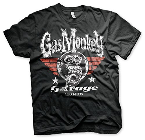 -. Title : Gas Monkey Garage - High Flying Monkey Pilot Hohe Fliegen Affe T-Shirt (Schwarz)