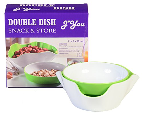 - Ingeniously designed double dish allows you to hide shells and pits out of sight and out of the way. Perfect design for Pistachios, Peanuts, Edamame, Cherries and more!