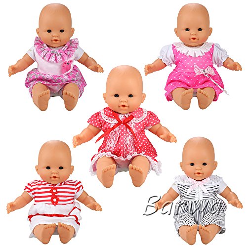 Package Included: 5 sets dresses clothes for 12 to 16 inch(30-40 cm) baby doll dolls are no included. Dolls are no included, only clothes outfits.