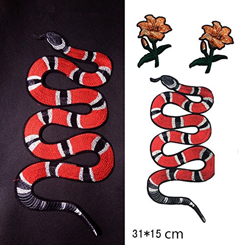 [Product Information]- 1pcs Snake+ 2pcs flower pattern cloth patches decoration embroidery applique coat sew on patches