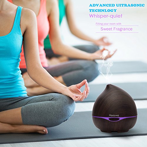 ❤HOROMA New Version and Ultrasonic Technology : Our New Aroma Diffuser looks like a WATER DROP and coated with dark wood grain, which makes it look very natural and primitive. Adopts ultrasonic technology, this diffuser is extremely quiet when working. It gives out ultra fine and smooth mist which can soften and moisten dry and chapped skin in winter. It also helps you breathe better when your are sleeping with air conditioner on.