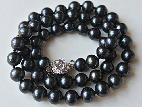 -. Title : Long 30" 7.5" set AAA Genuine 8-9mm ROUND Black Strand Pearl Necklace Bracelet Stud Earrings 3pc set Cultured Freshwater