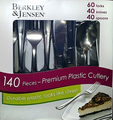 Berkley & Jensen 140 Pieces Premium Plastic Cutlery (Silver-like 60 Forks, 40 Knives, 40 Spoons)