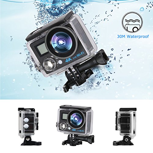 HD Action Camera: Professional 25fps & 2.7K 30fps video with HD photos at up to 30 frames per second for incredible photos, which is 4 times the resolution of traditional HD cameras. Capture and share your world in a fantastic resolution 100 Feet(30m) waterproof camera: This sports camera is designed to withstand extreme