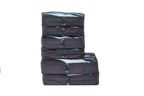 3 DIFFERENT SIZES -6 pieces of different sizes compression cubes include in one package. 2* Large: 17.5" x 4" x13" ; 2* Medium: 13.75" x 4" x 9.8" ; 2*Small: 13.75" x 4" x 5.1". Different compression pouches to store different items.