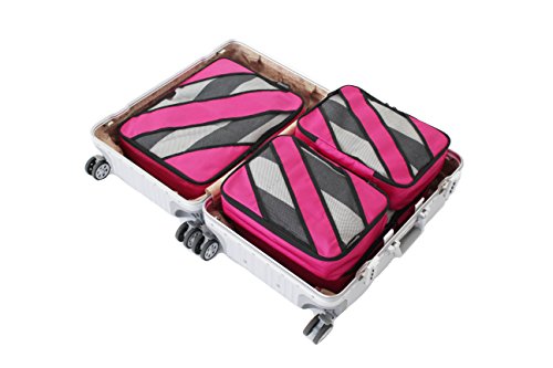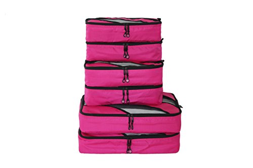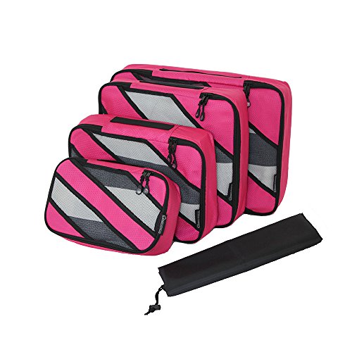 CONVENIENT HAND CARRY DESIGN-The travel cubes come with a hand carry design which is convenient for carrying during travel or outdoor camping and hiking.Just put all necessity such as cloth,underwear,bra,socks toiletries,makeup and other items into the packing organizers,hand it or put the whole compression packing cubes in luggage and go for a nice trip.