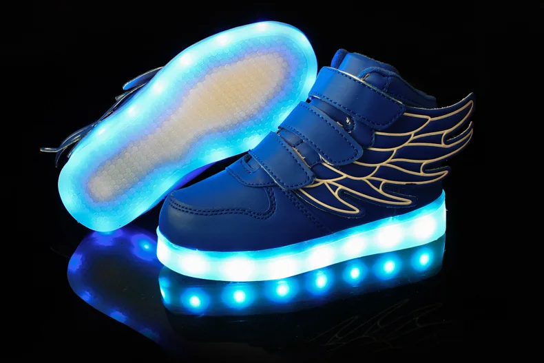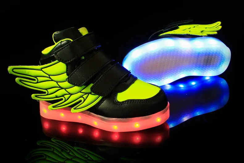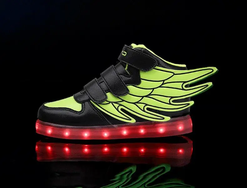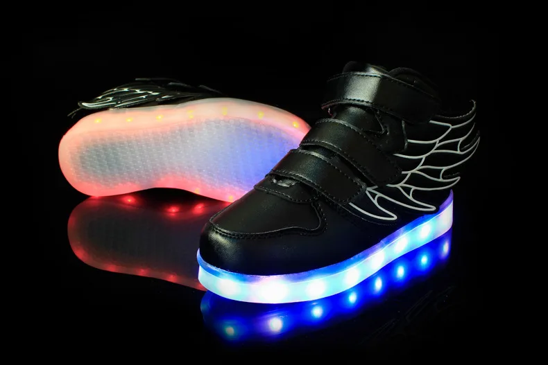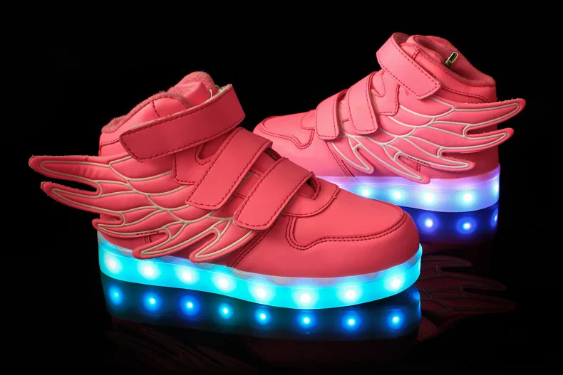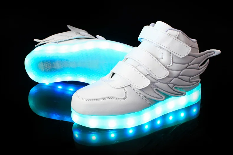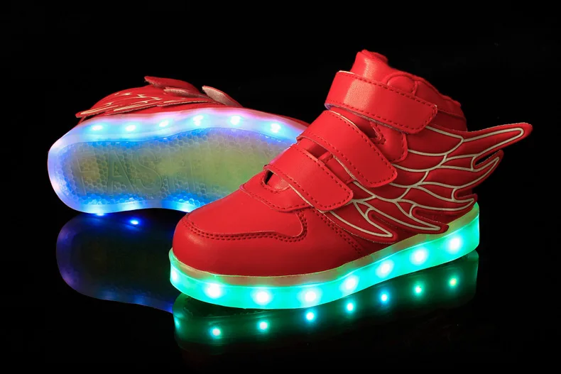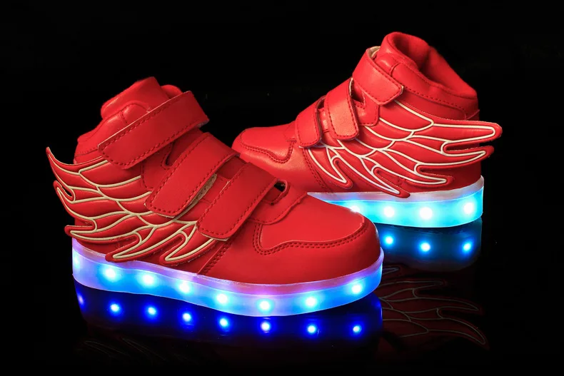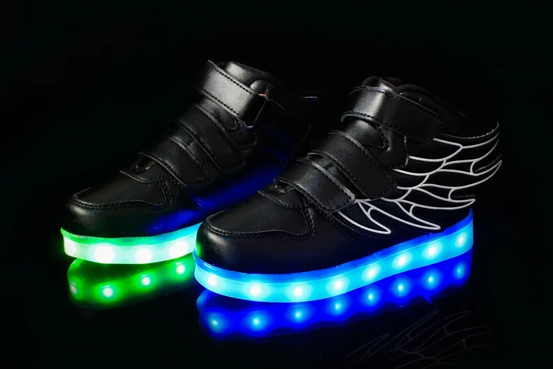 New Kids USB Charging LED Light Shoes Soft Leather Casual Boy&Girl Luminous Antiskid Bottom Children Wings Party Sneakers