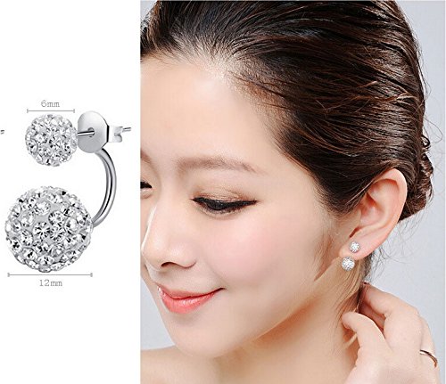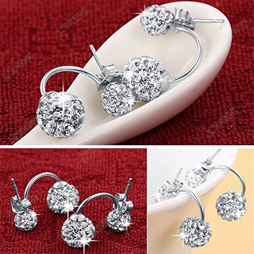 Adecco LLC New Women Fashion Jewelry CUTE Silver Plated Double Beads Crystal Stud Earrings