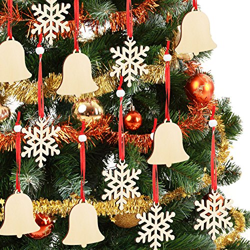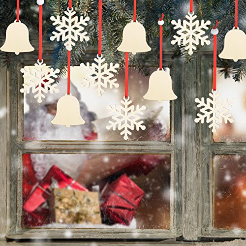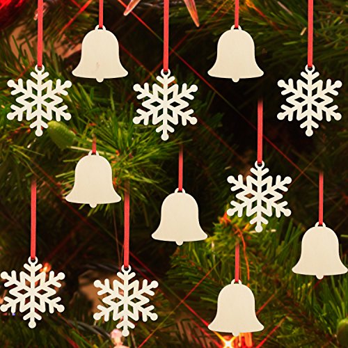 - Feature: the snowflake and bell are made from wood, and feature smooth surface without burrs; Their exquisite design makes them serve as wonderful decorations