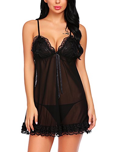-. Feature : The lace on the bust looking like a flower ,sweet and cute . / Floral lace top and skirt ,erotic hot sexy babydoll for ladies .It is very attractive for drawing attention from your lover. / Sexy lingerie gift for your lover or girl friend .Believe that it will bring a romantic night for you . / See-through look dress, sheer mesh fabric with lace ruffles decoration.2 pieces lingerie set with G string bottom ,babydoll chemises mini dress. / Adjustable spaghetti strap, v-neck, pleated bottom.2 lingerie pieces set, babydoll chemises mini dress and G-string.