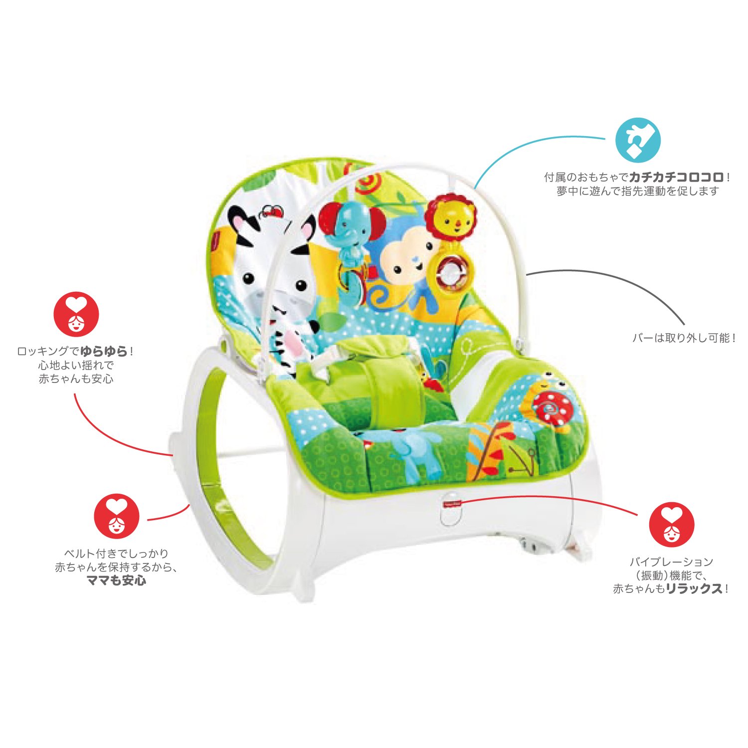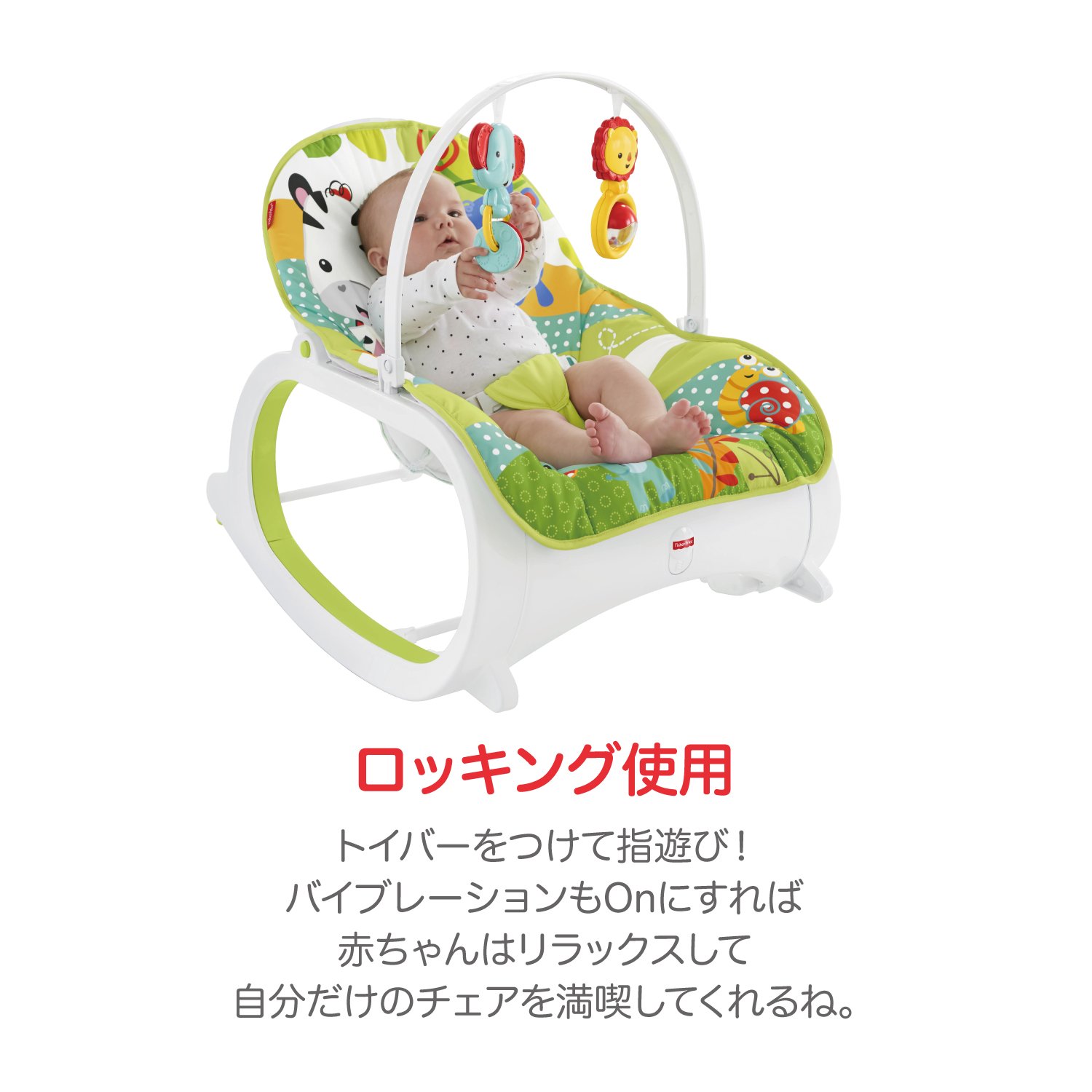 体重18kgまで長く使えます。リラックス振動機能付き。