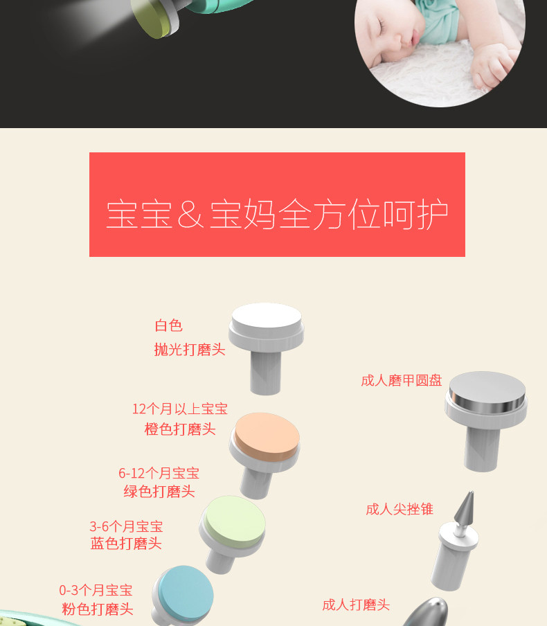 鲁茜宝宝电动磨甲器 婴儿指甲剪 新生儿童指甲剪婴儿防夹肉指甲剪