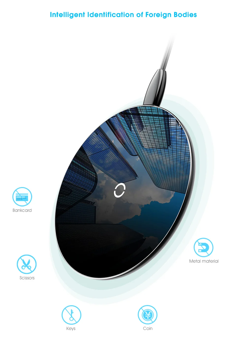 Features :Simple Wireless Charger Aluminium Alloy Glass 10W
