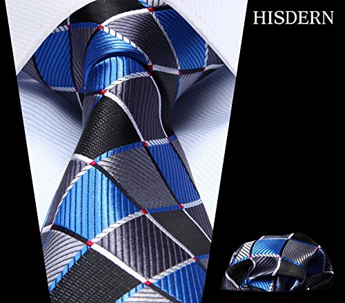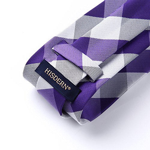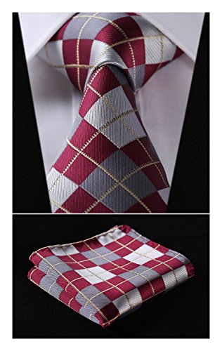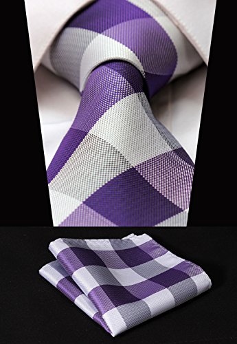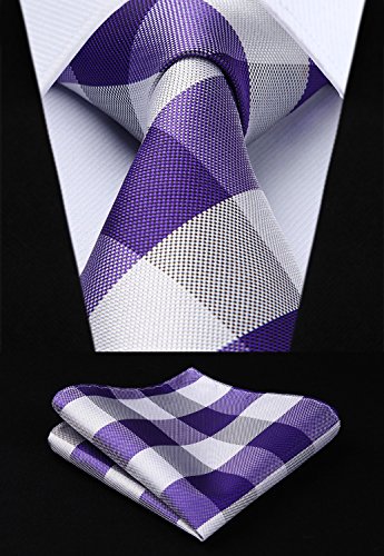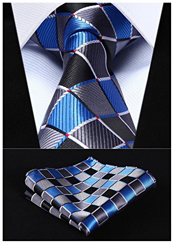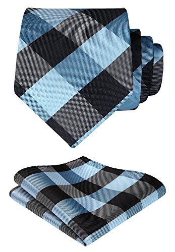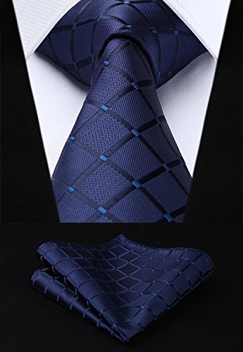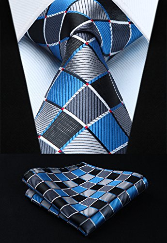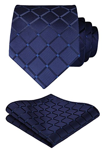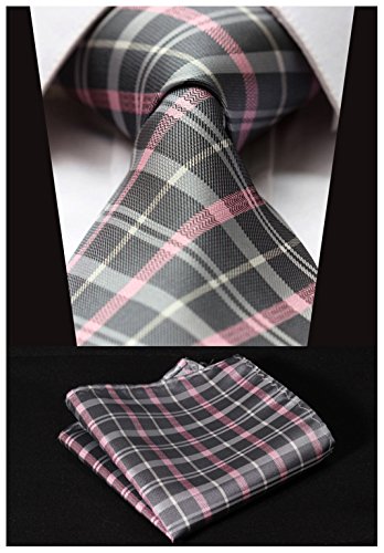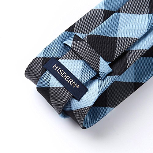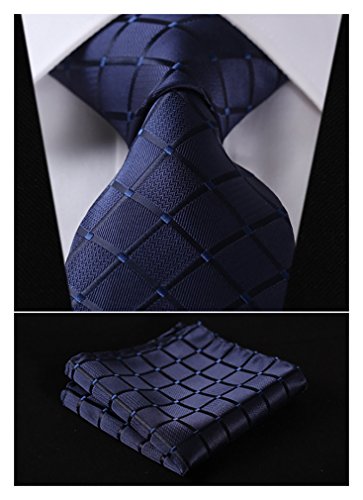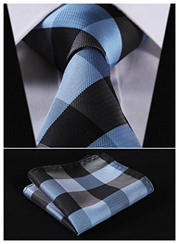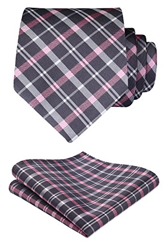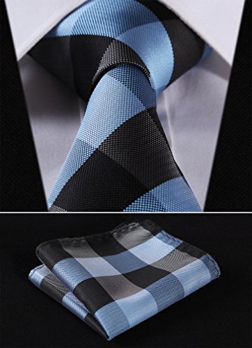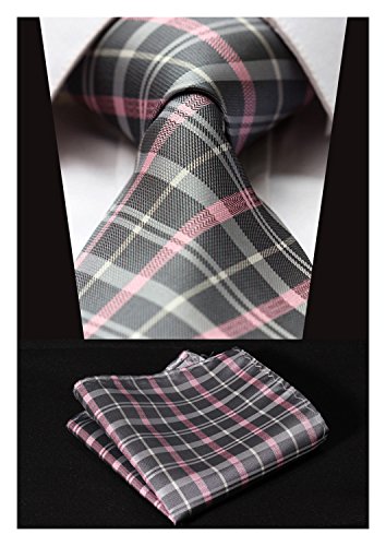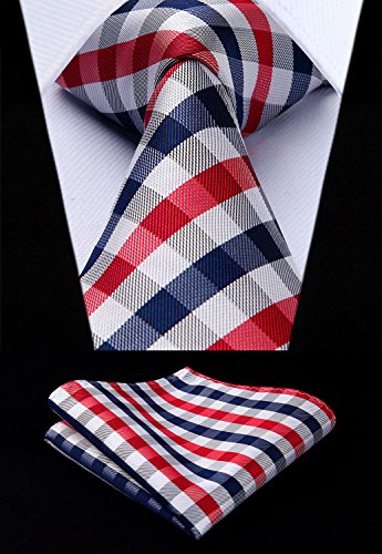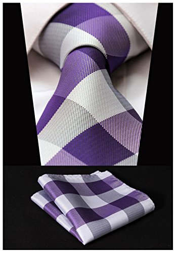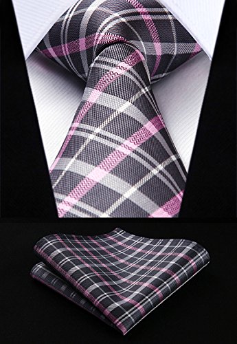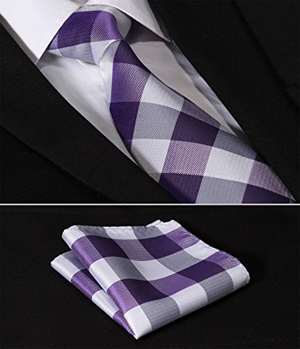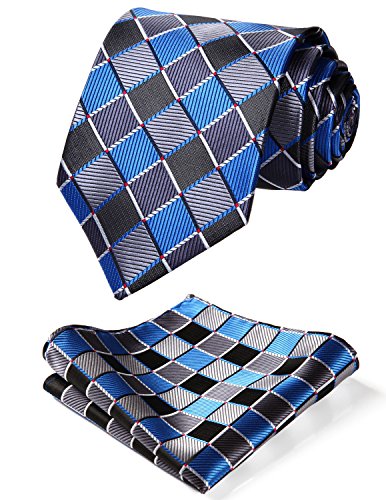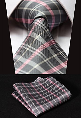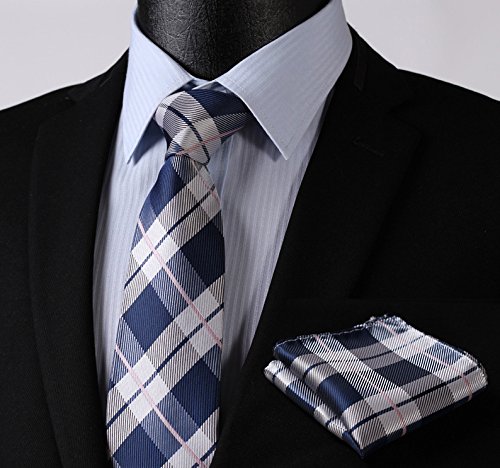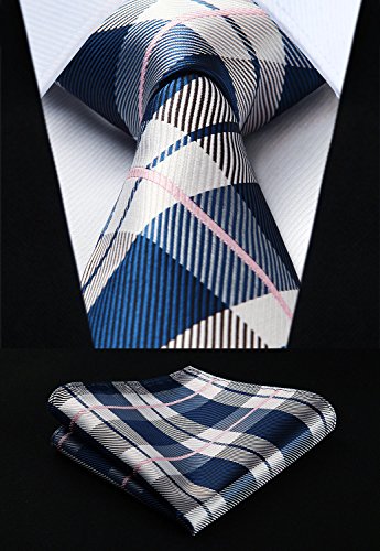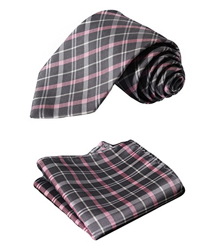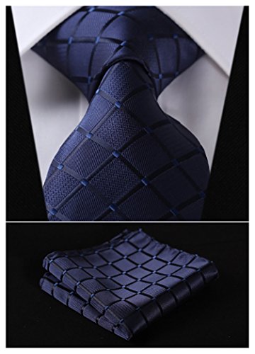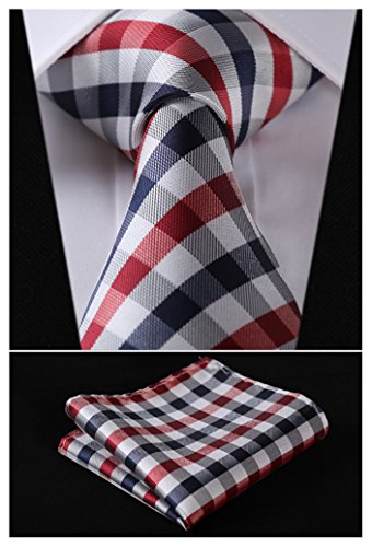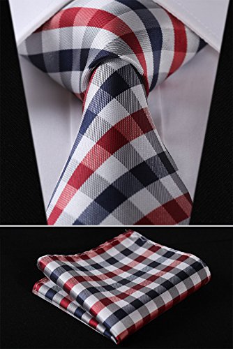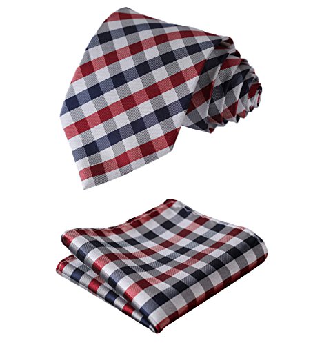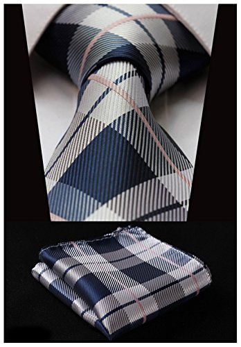 | HISDERN Extra Long Check Tie Handkerchief Men's Necktie Pocket Square Set |