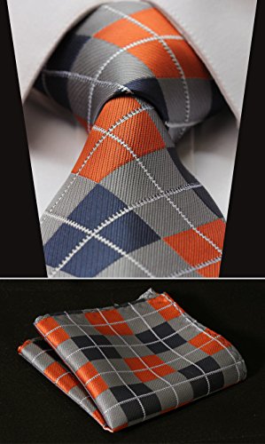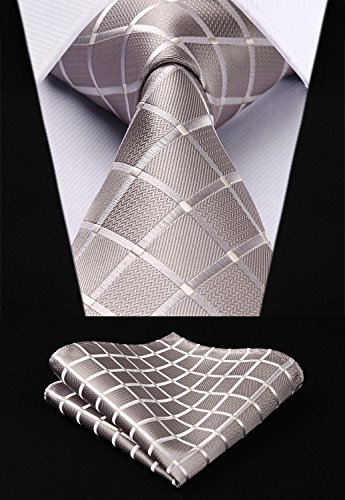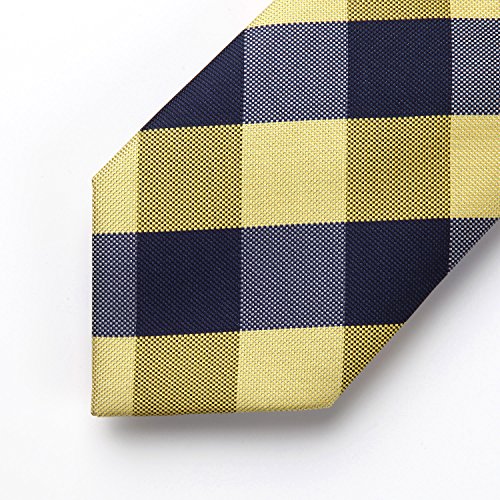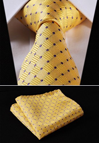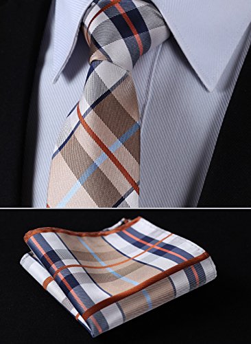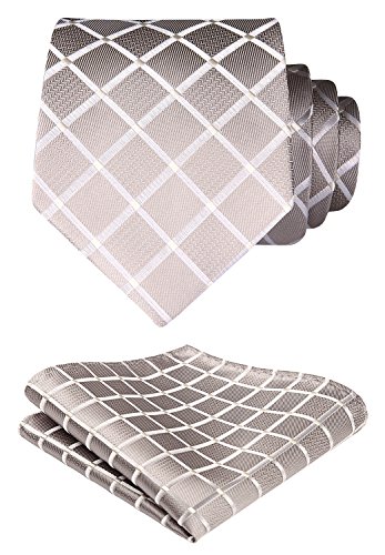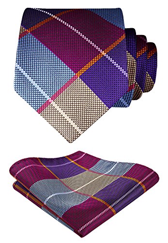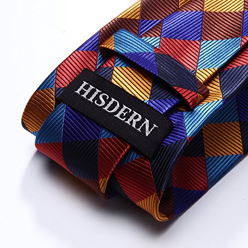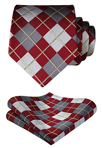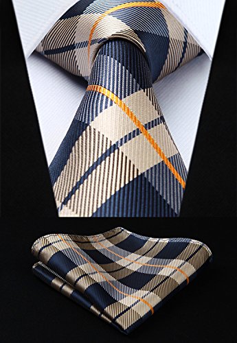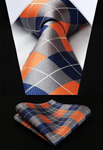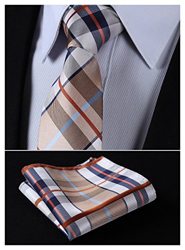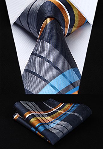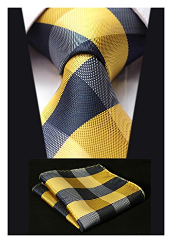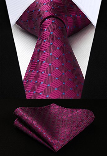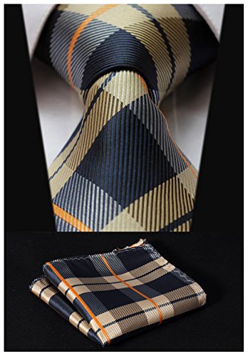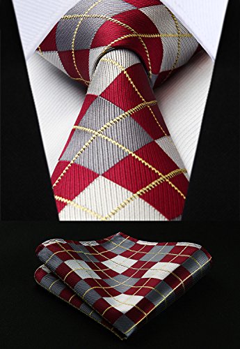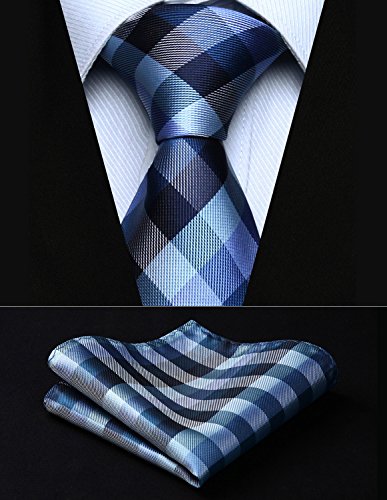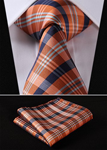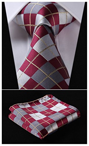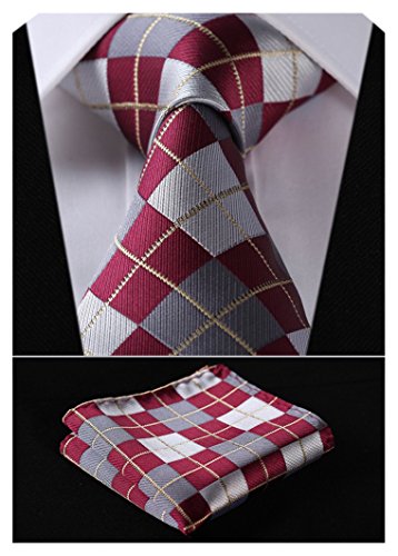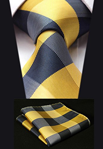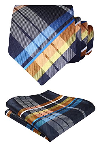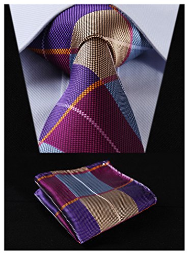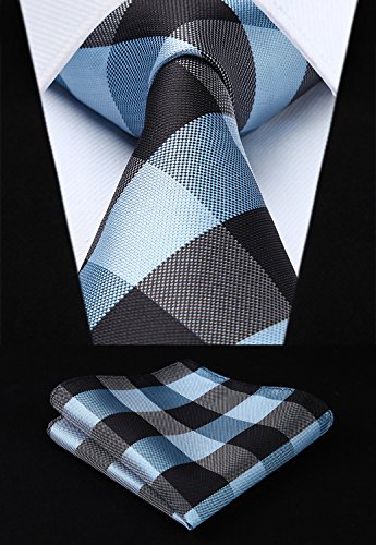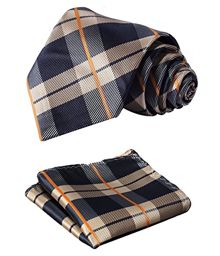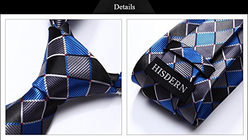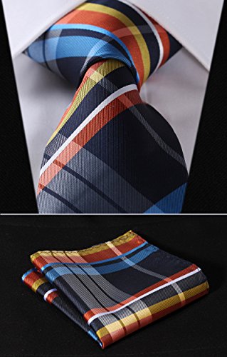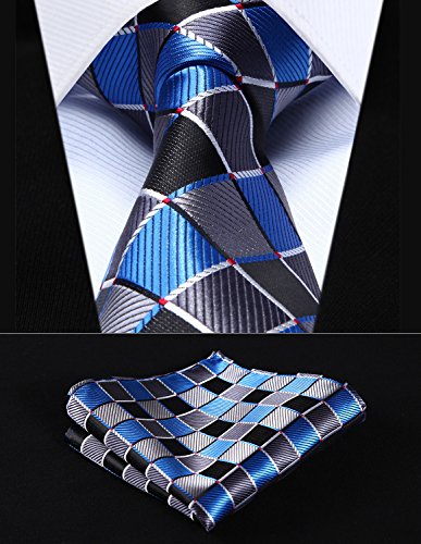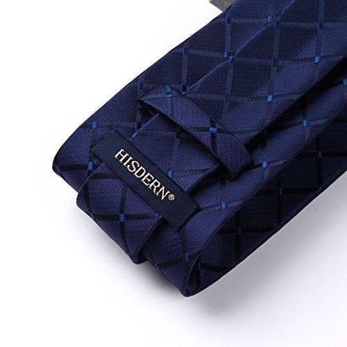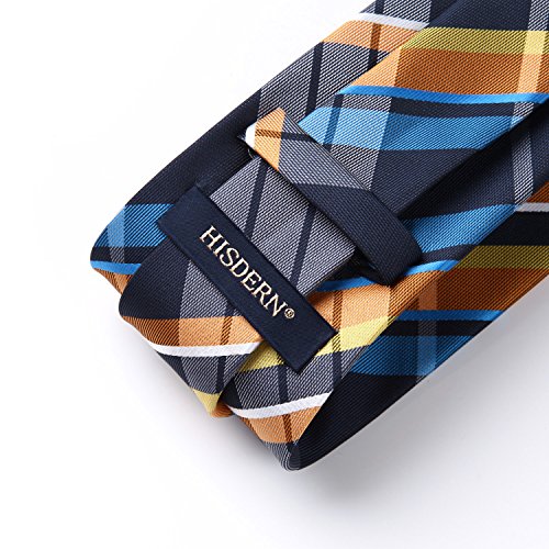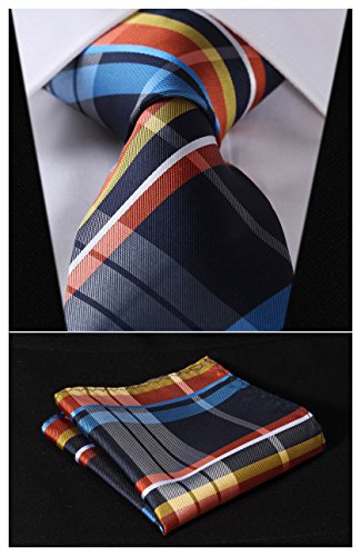 | HISDERN Extra Long Check Tie Handkerchief Men's Necktie Pocket Square Set |