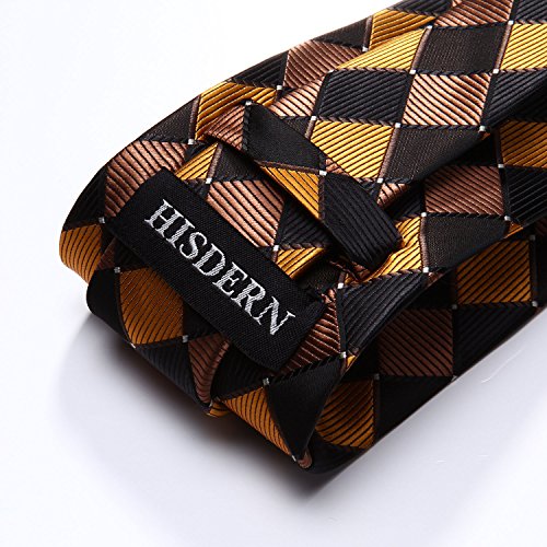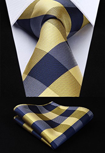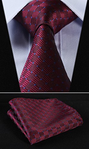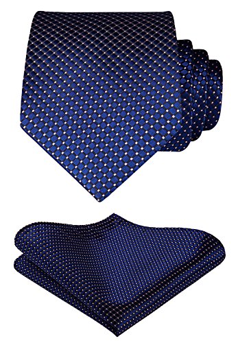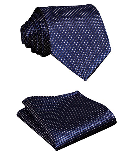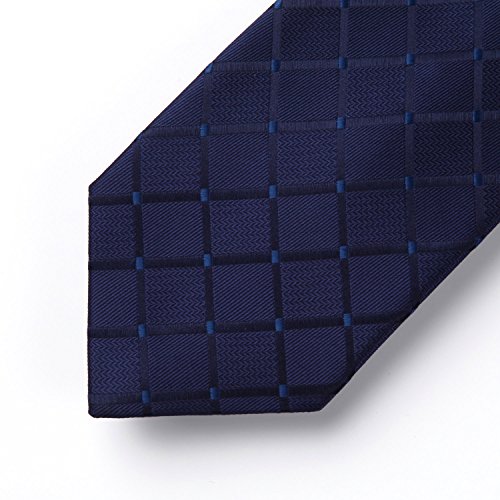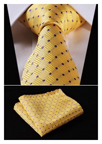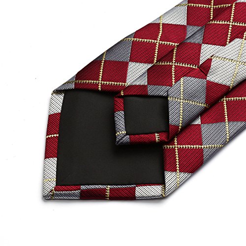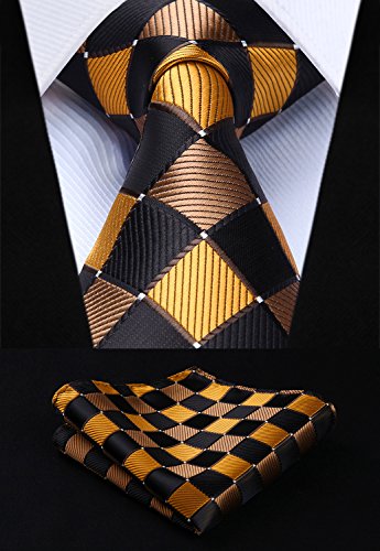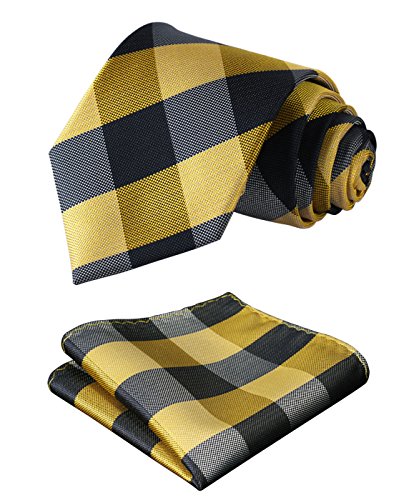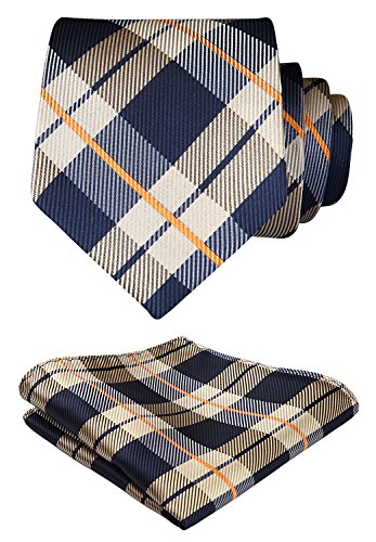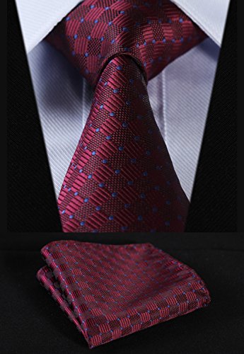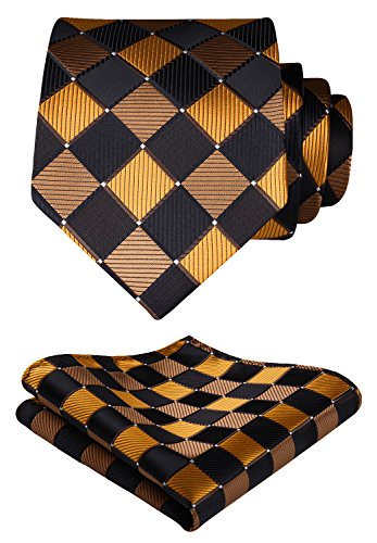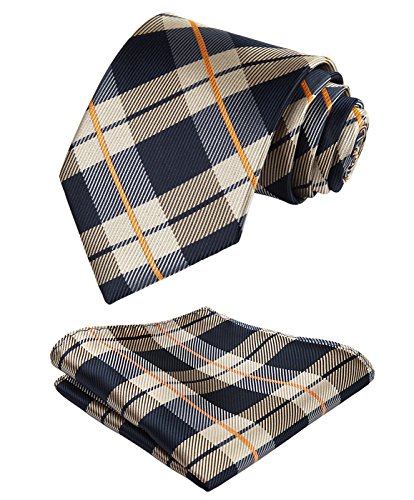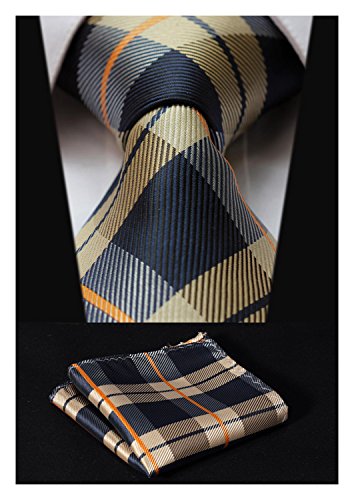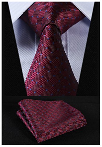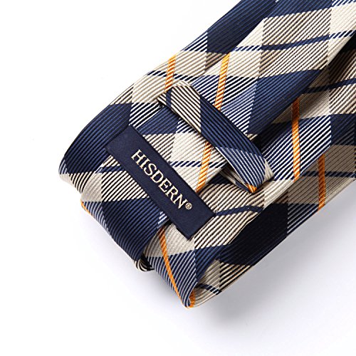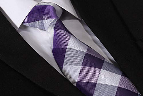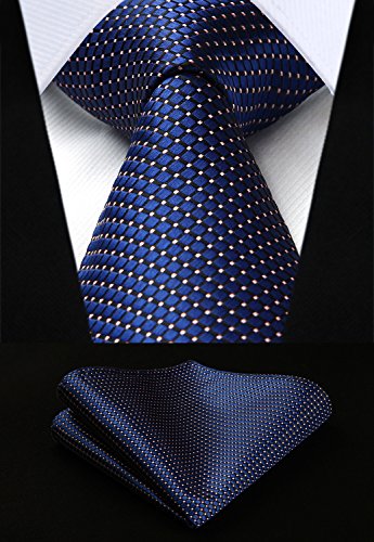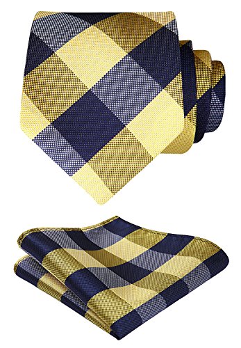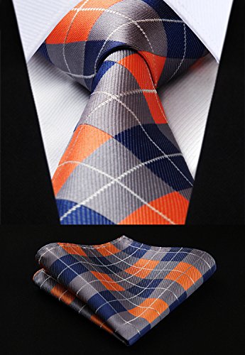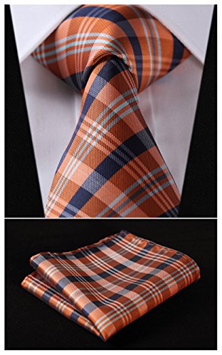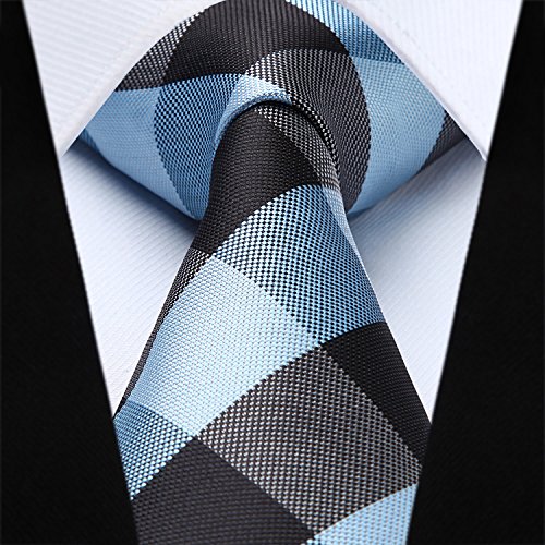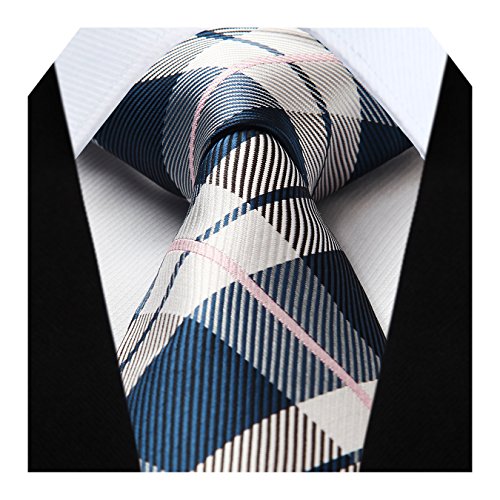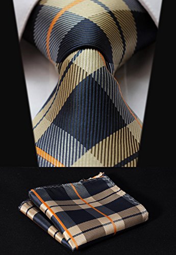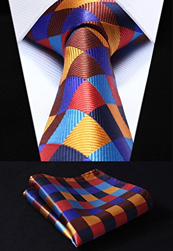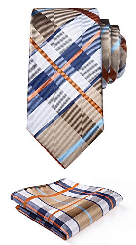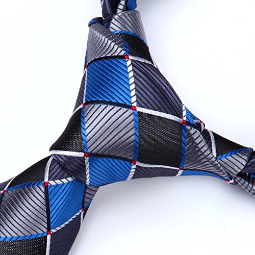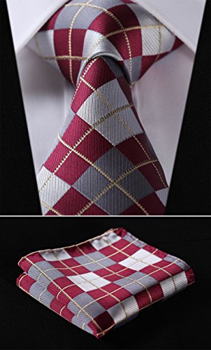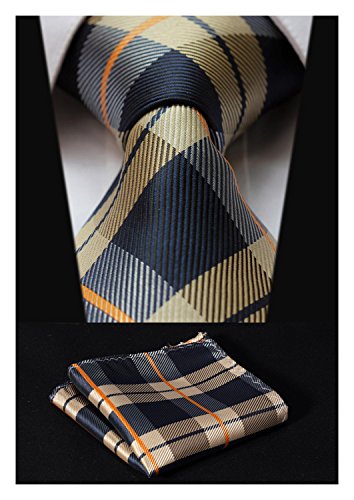 | HISDERN Extra Long Check Tie Handkerchief Men's Necktie Pocket Square Set |