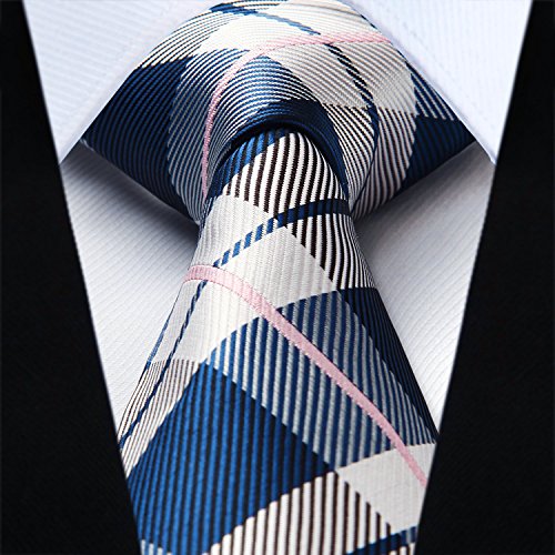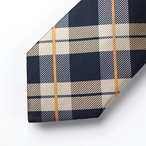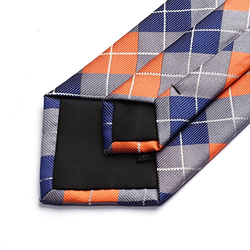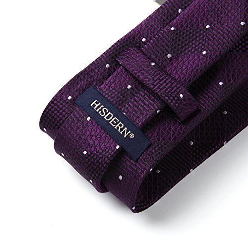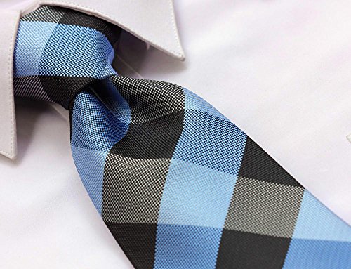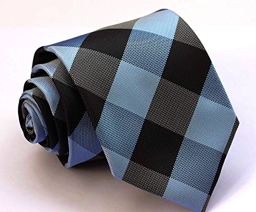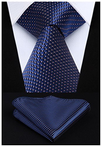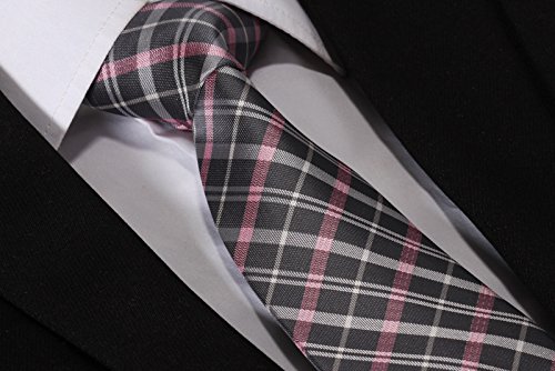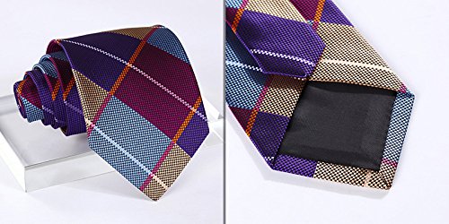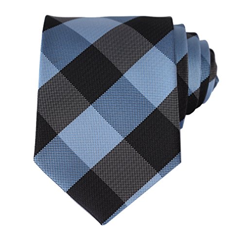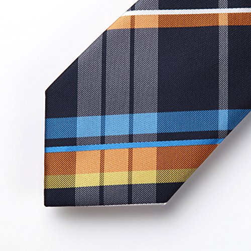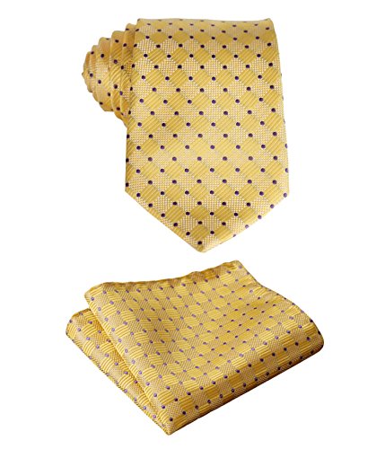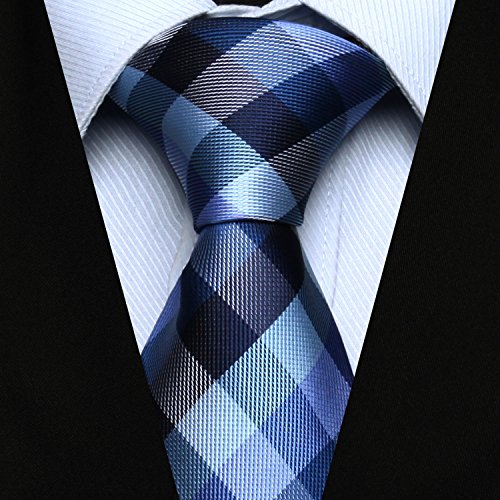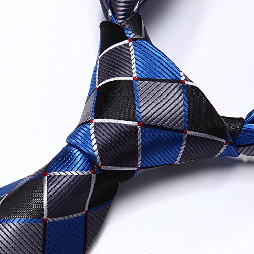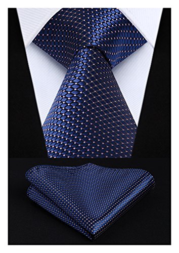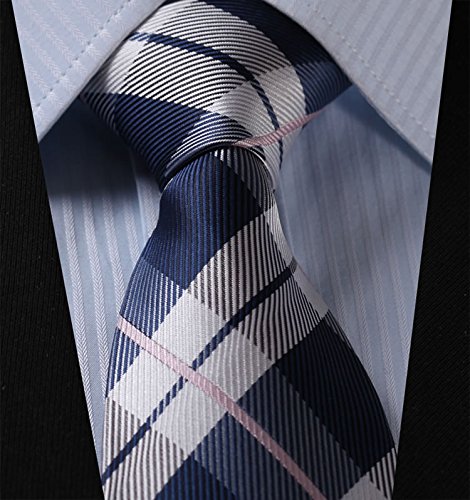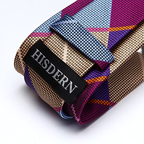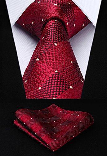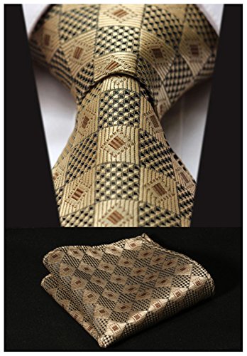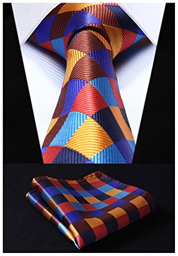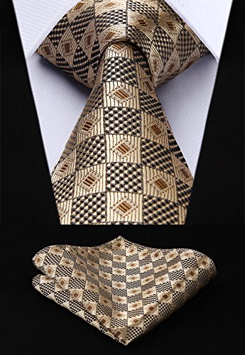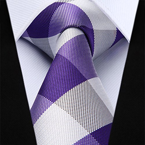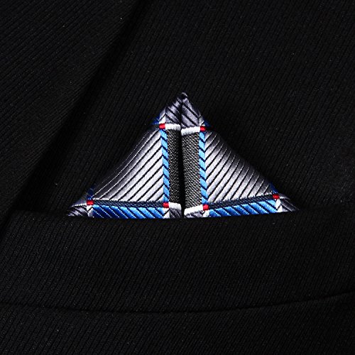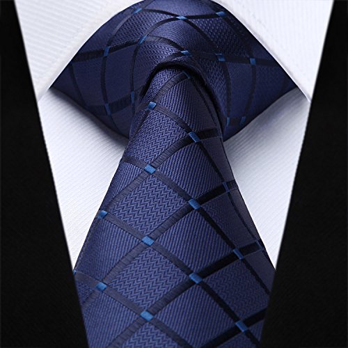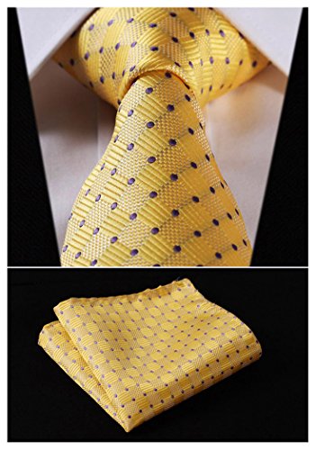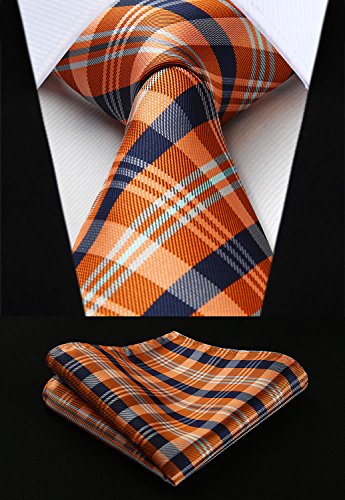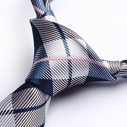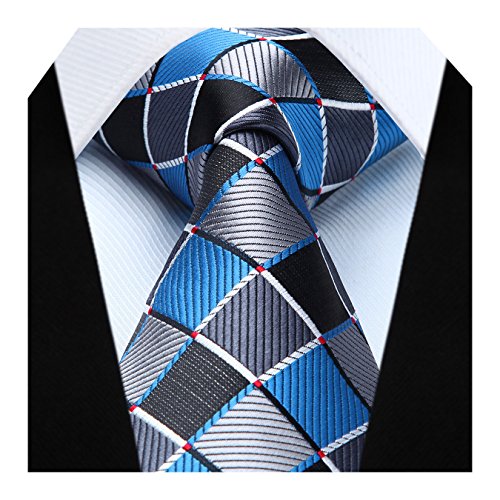 | HISDERN Extra Long Check Tie Handkerchief Men's Necktie Pocket Square Set |