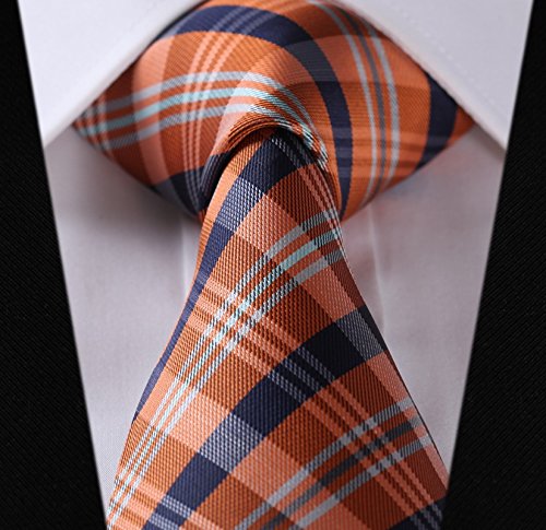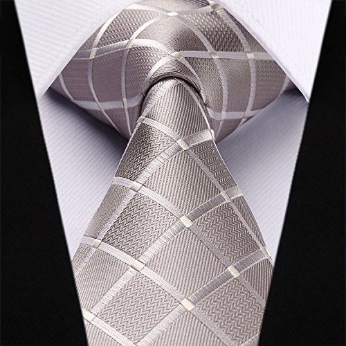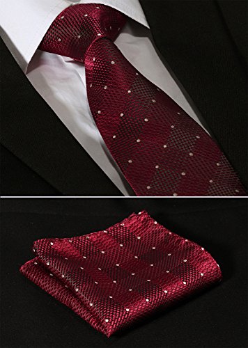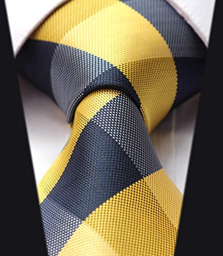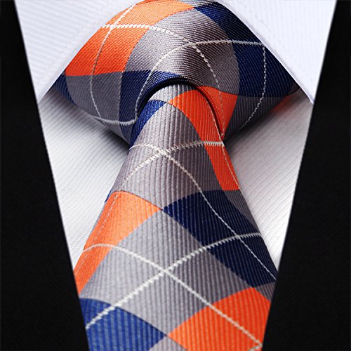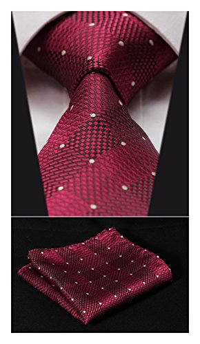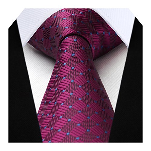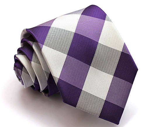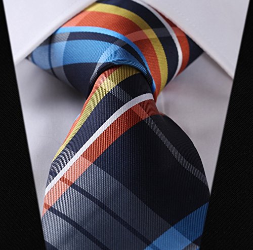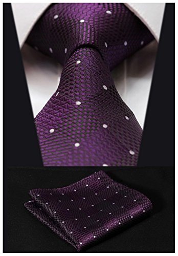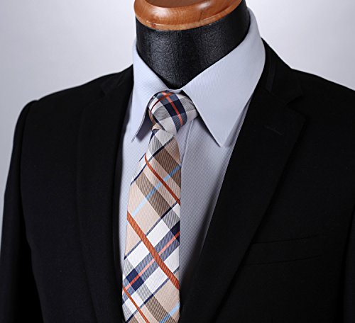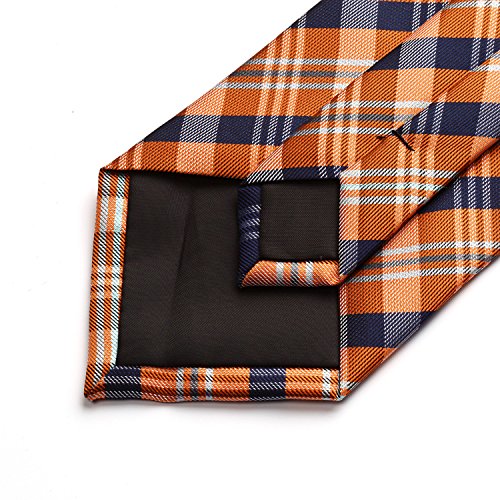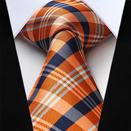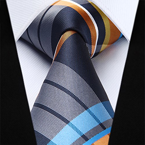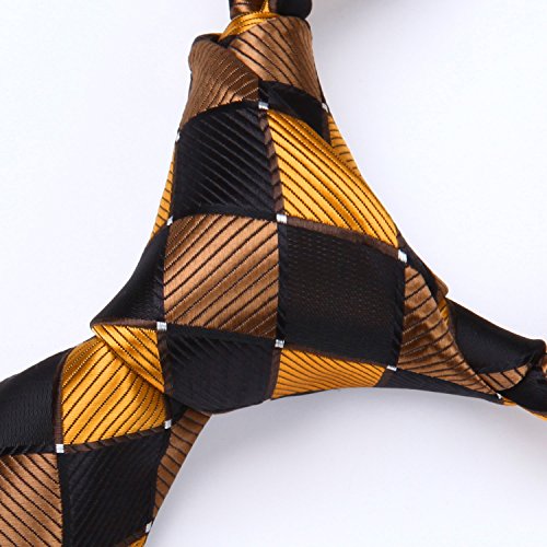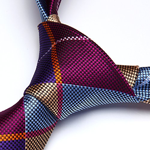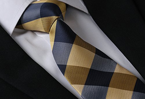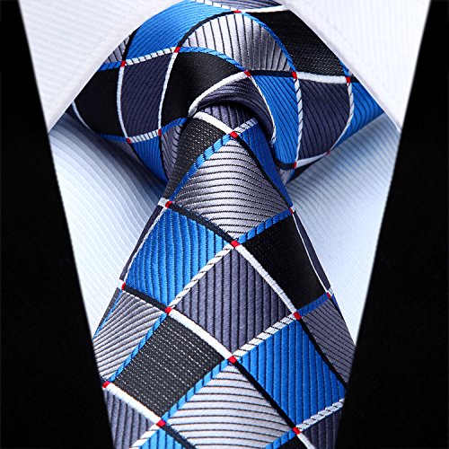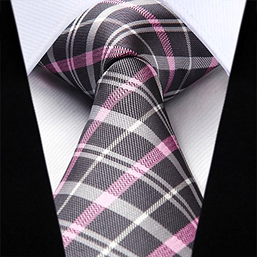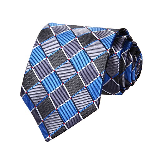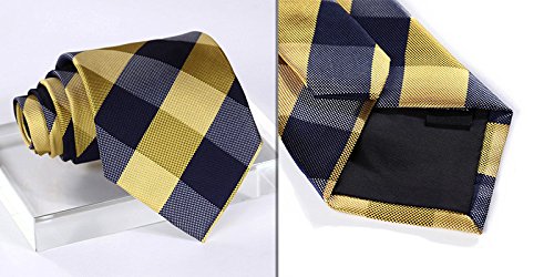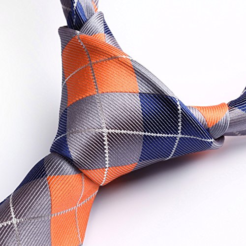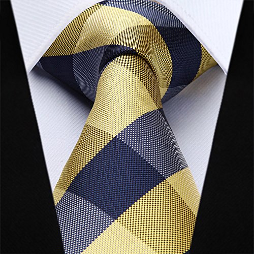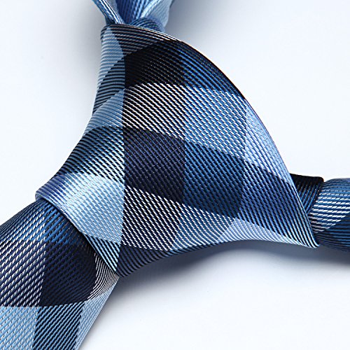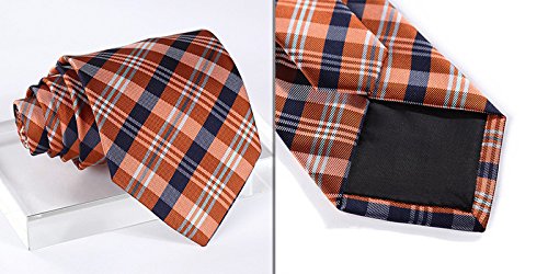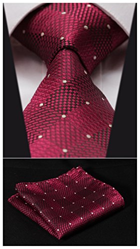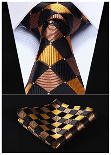 | HISDERN Extra Long Check Tie Handkerchief Men's Necktie Pocket Square Set |