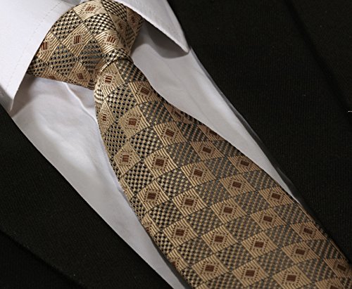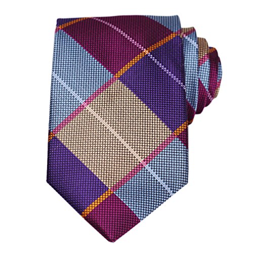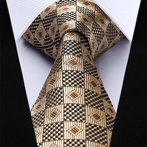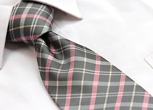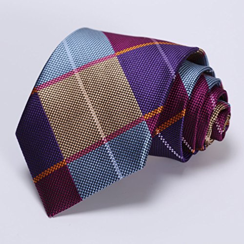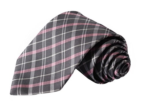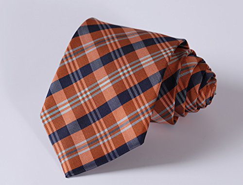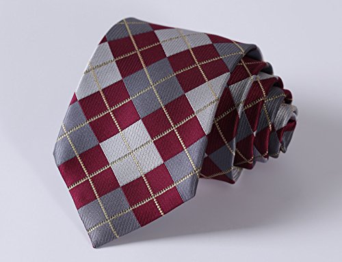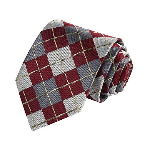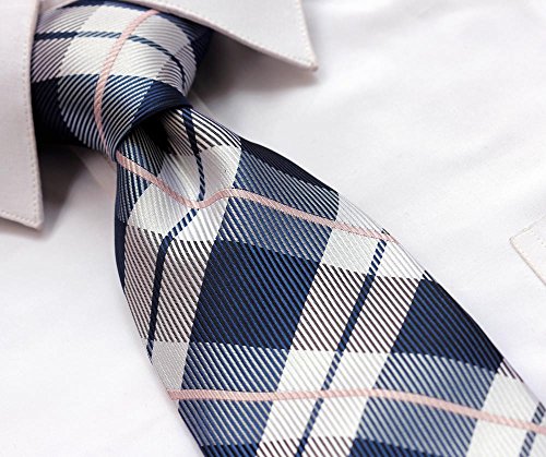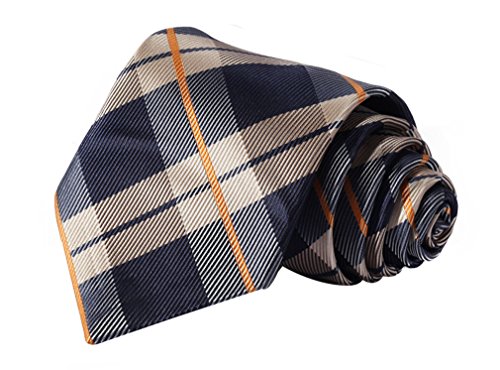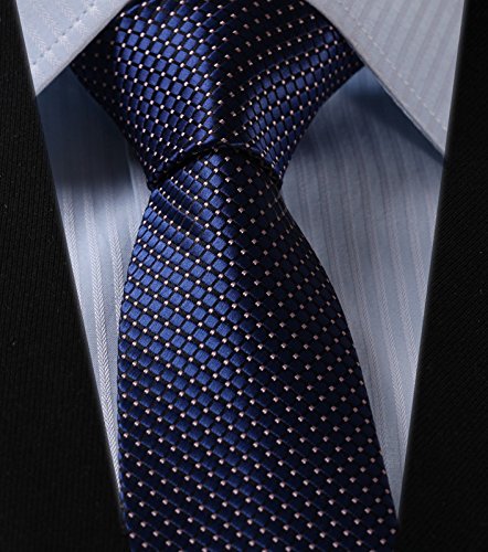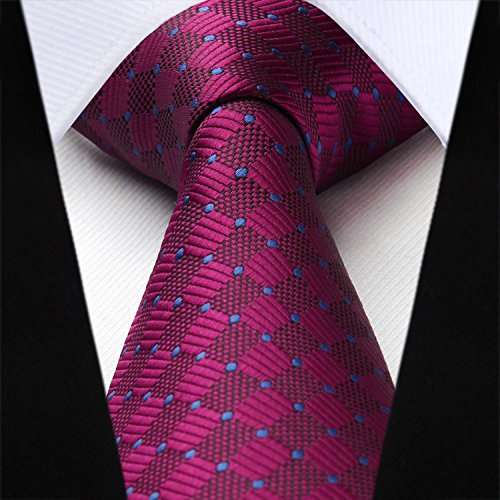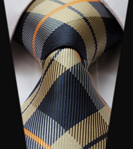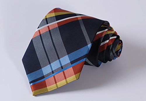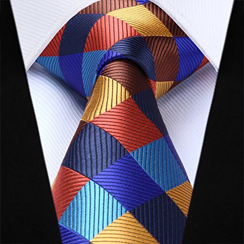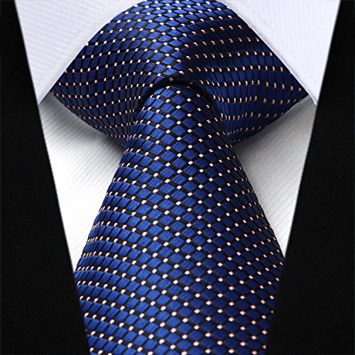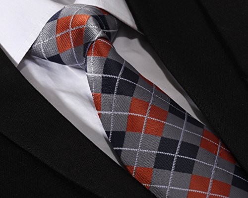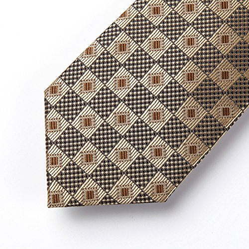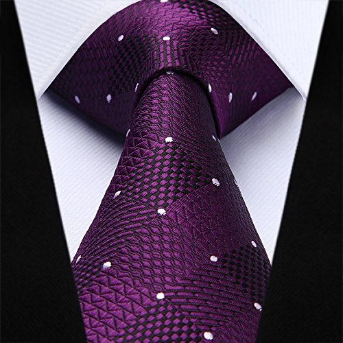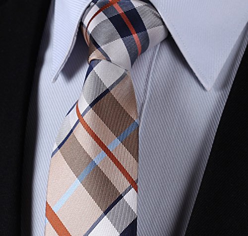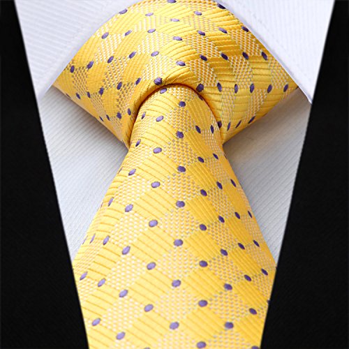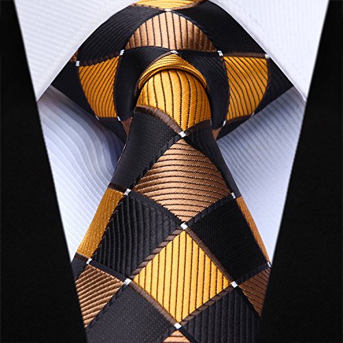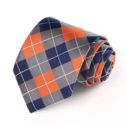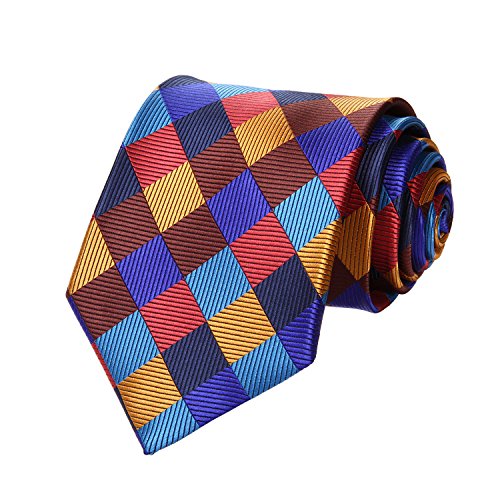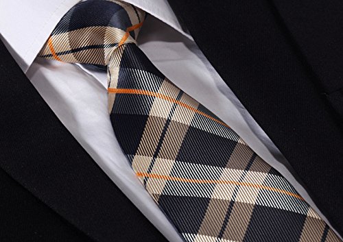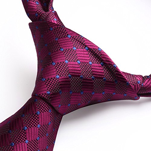 | HISDERN Extra Long Check Tie Handkerchief Men's Necktie Pocket Square Set |