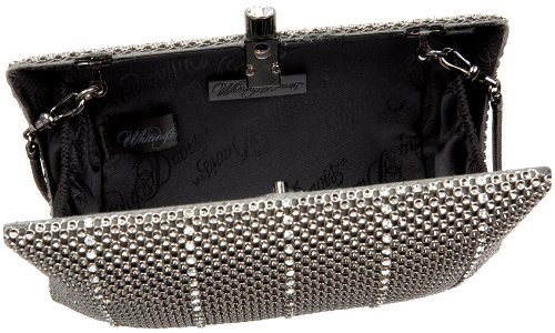 This chic dimple mesh minaudiere is studded with vertical stripes of sparkling crystals and features a crystal topped push clasp. Spotlighted in high end publications such as Who What Wear and PurseBlog, this elegant evening bag is perfect for special occasions where you want a little sparkle on your arm, such as weddings, galas and holiday parties. Wear it as a stylish crossbody bag or remove the chain to wear it as a glamorous hand-held clutch.