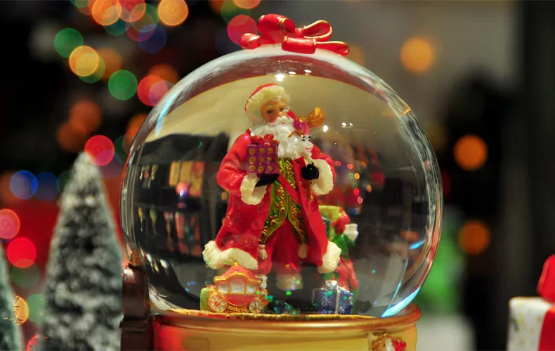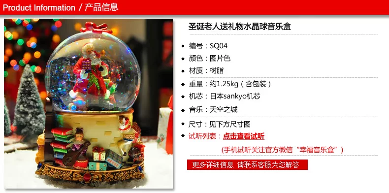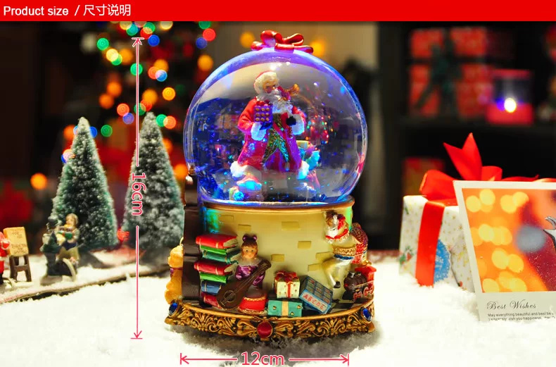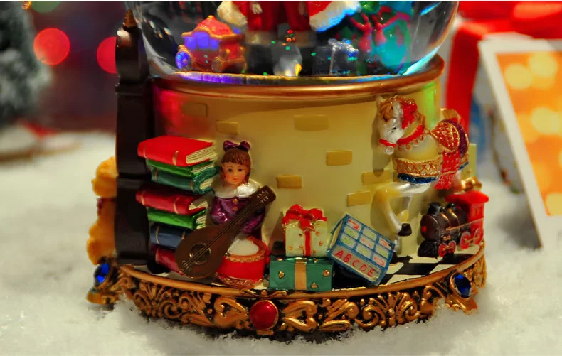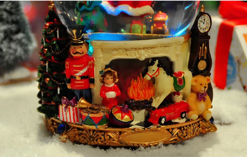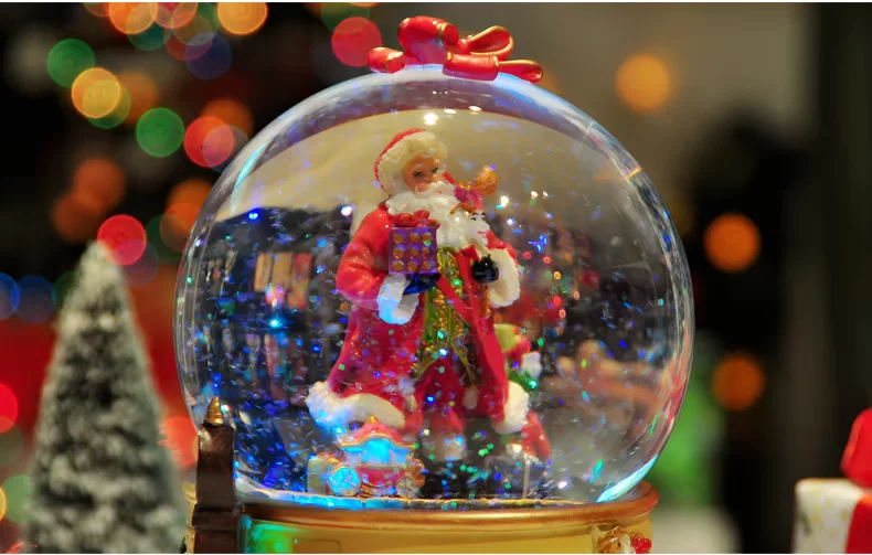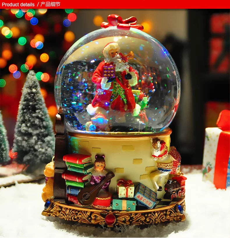 水晶球里面 雪花亮片 加上七彩灯光的点缀 圣诞老人看起来更加亲切!