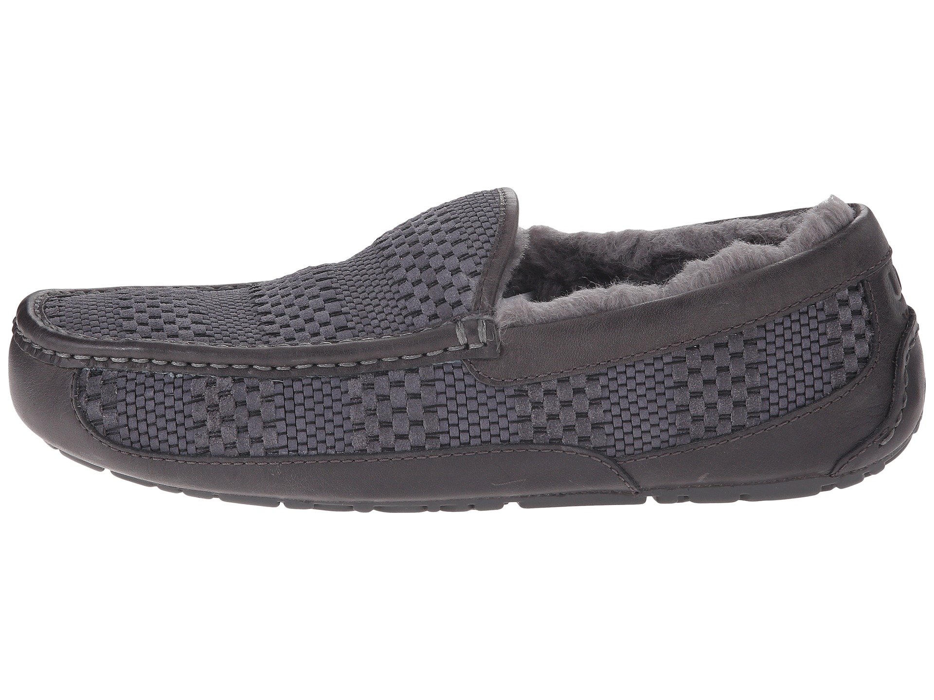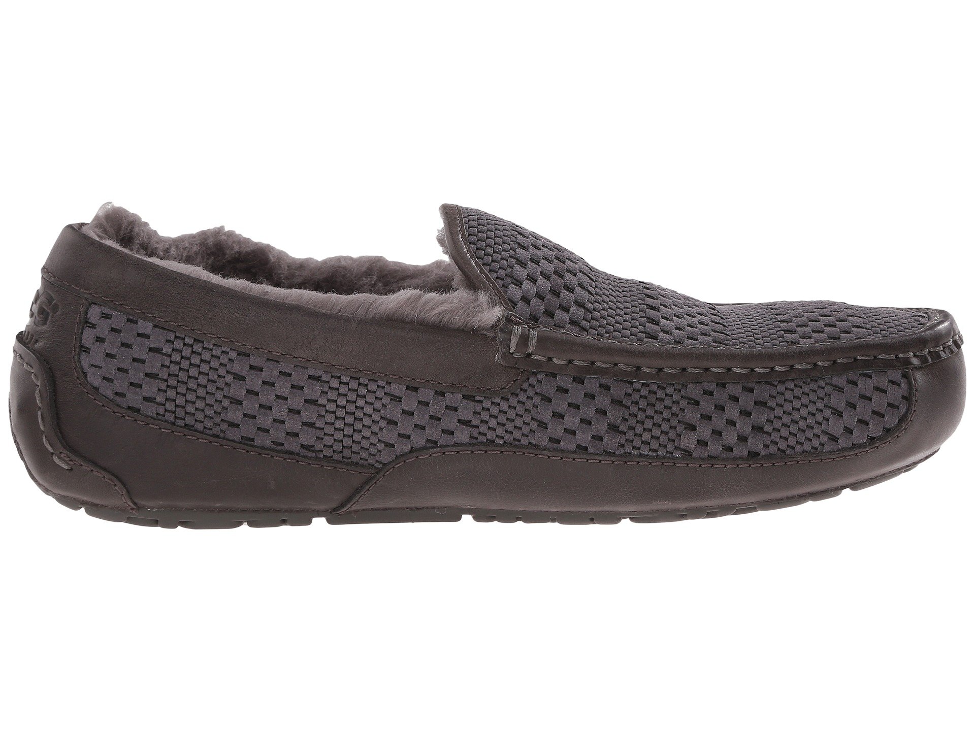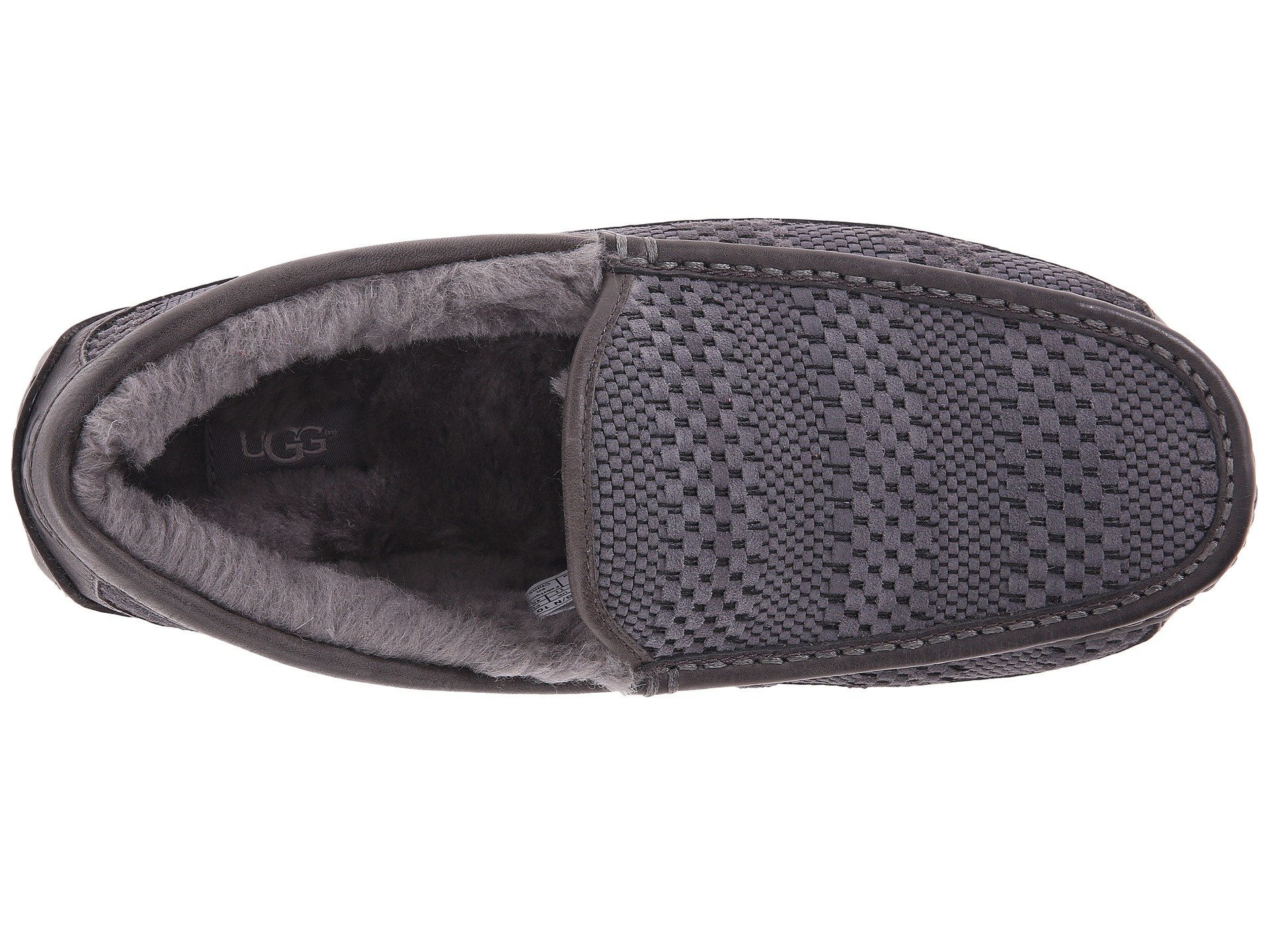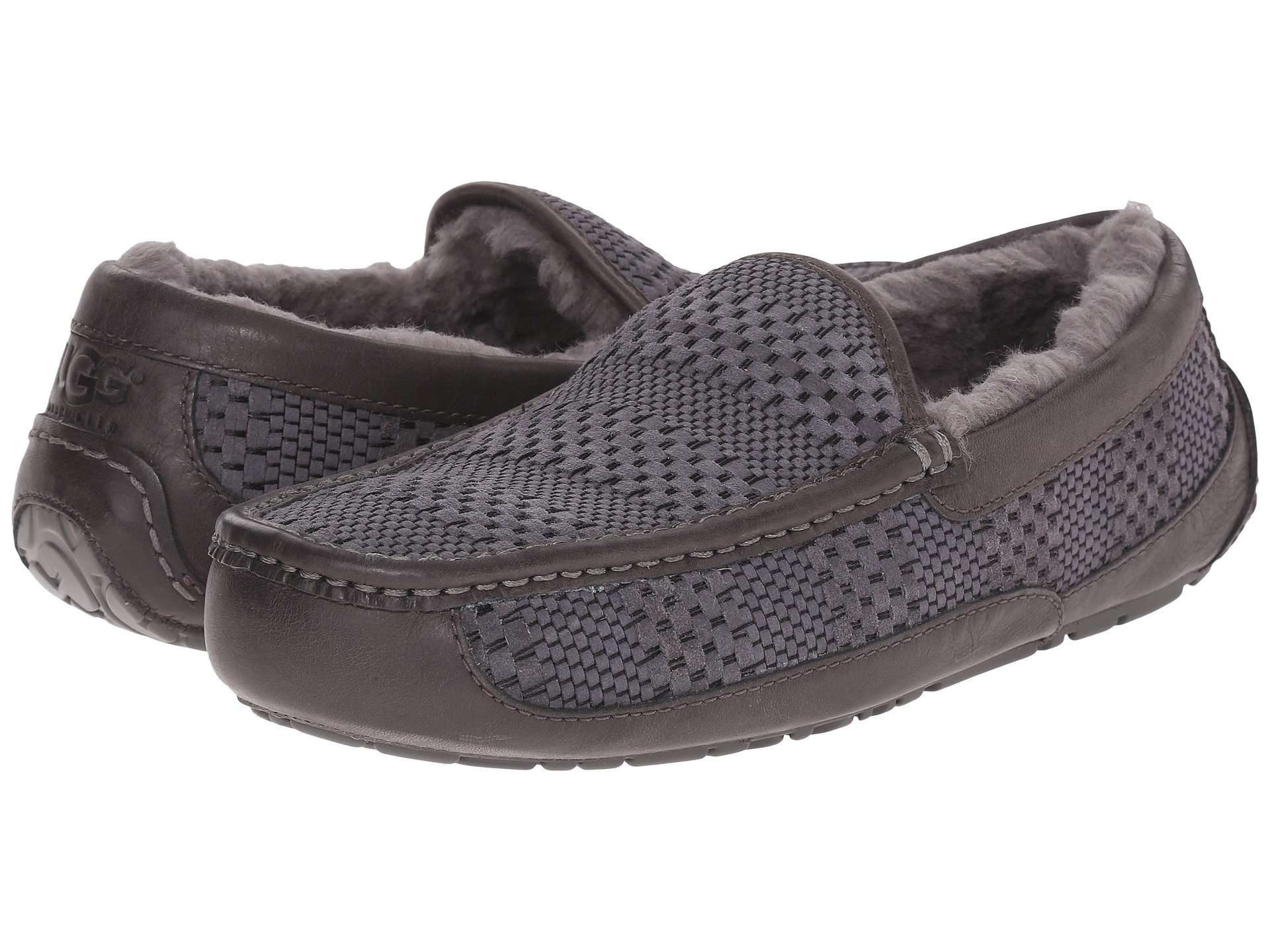 | Product Information SKU: #8692397Luxuriate in the handsome Ascot Weave slipper.Woven soft suede upper in a slip-on silhouette. Fully lined with UGGpure™ wool.Fit should be snug, but not uncomfortable. Footwear will give a little as fleece footbeds form to each individuals foot.Molded rubber outsole.From the Ugg Home/Spa Collection.Product measurements were taken using size 11, width D - Medium. Please note that measurements may vary by size.Weight of footwear is based on a single item, not a pair.Measurements: Weight: 12 oz |