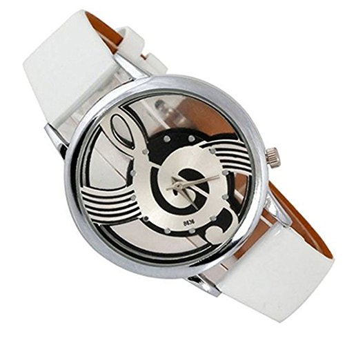 -. Title : Polytree Unisex Musical Note Faux Leather Strap Hollow Quartz Wrist Watch(White)