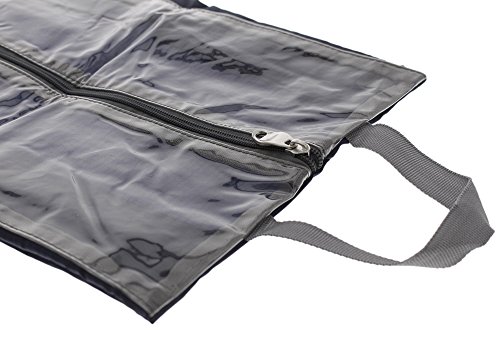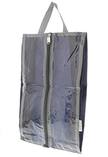 Compact yet convenient, these travel shoe bags are ideal for home, gym, and travel use. Genius Packing HackTravel better and more efficiently by protecting your shoes while separating them from other travel items and clothing. Compress portable shoe bag to save space in your cramped travel luggage. Protection For Your Favorite KicksUnlike plastic bags, Juvale's shoe bags are made from durable, high-quality nylon to protect your favorite footwear from water splashes, dust, scuffs, and scratches. Fabric is suitable to store all shoe types including leather dress shoes, sneakers, boots, heels, and more. Foolproof DesignFeaturing a slide-easy zipper closure and transparent windows for easier packing and identifying of bag contents. MeasurementsApproximately 15 x 6 Inches. Enough to fit dress shoes, heels, boots, and sneakers up to men's US size 16. Shipping List:2 x Travel Shoe Bags 0