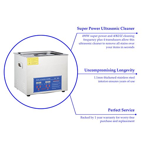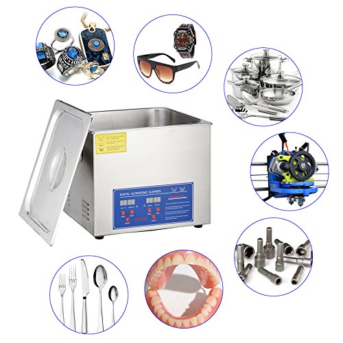 Tek Motion 10L Digital Professional Ultrasonic Jewelry Cleaning Machine Cleaner with Heater, Timer (490 W, 4x60 W Transducers)