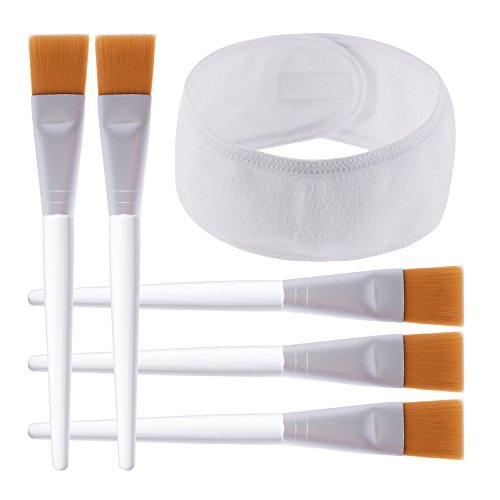 -. Title : BBTO 5 Pieces Facial Mask Brushes Makeup Brushes Cosmetic Brush with Headband Makeup Hairband for Face Cleaning, Mask and Makeup