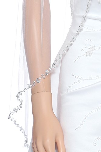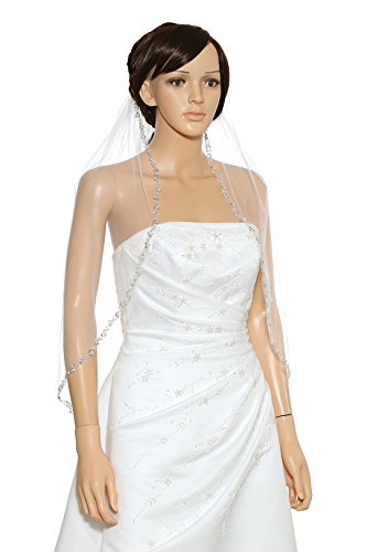 (SAMKY)/Accessories/Scarves/DIRECT FROM USA/1T 1 Tier Pearl Silver Beads Flower Bridal Veil - Ivory Elbow Length 30" V411
