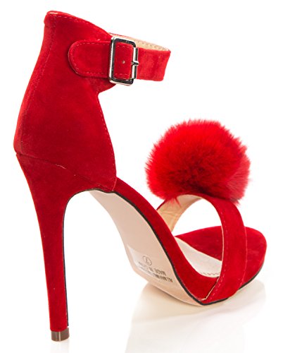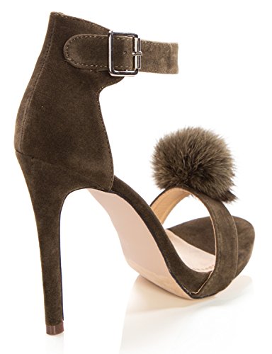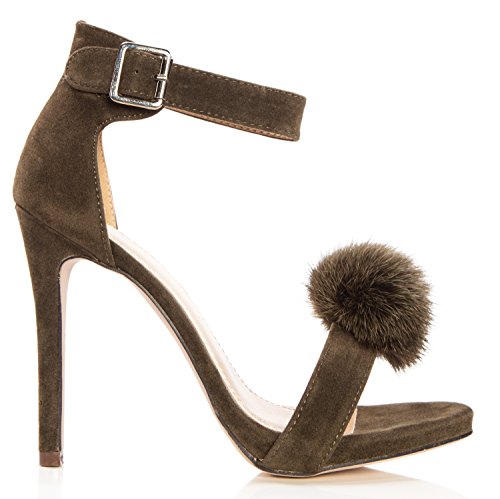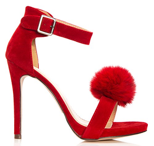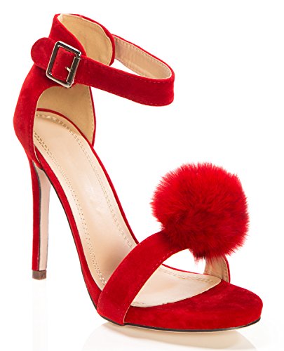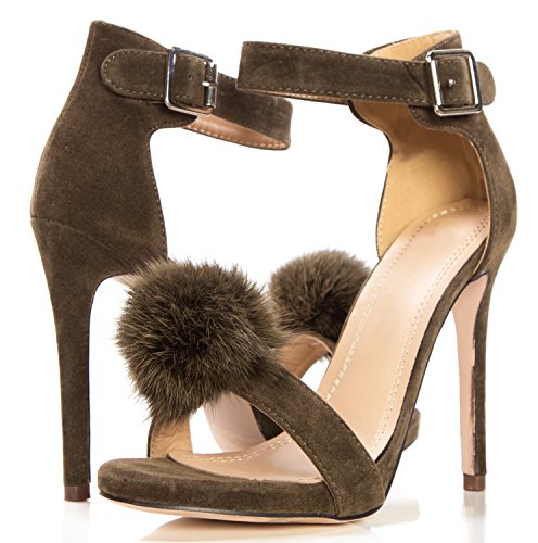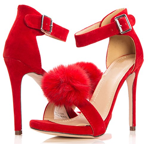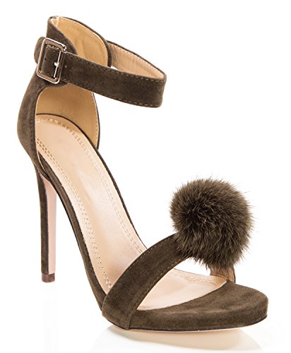 OLIVIA K Women's Platform Pom-Pom Single Band Ankle Strap High Heel Suede Sandals