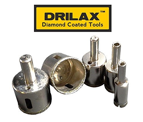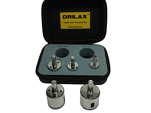 Drilax™ 5 Pcs Diamond Drill Bit Set 3/4", 1", 1 1/4", 1 3/8", 1 1/2" - Wet Cutting Tiles, Glass, Fish Tanks, Marble, Granite, Ceramic, Porcelain, Bottles, Quartz, Lot 5 Diamond Coated Hole Saws- Kitchen, Bathroom, Shower, Faucet