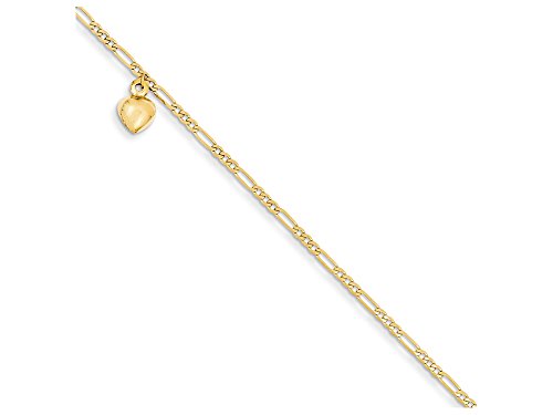 -. Title : 9 Inch 14k Figaro Link Dangling Heart Anklet (Smaller Ankles) 14kt