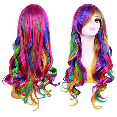 BERON 27.5" Women Girl's Long Rainbow Wavy Wig for Halloween Anime Cosplay