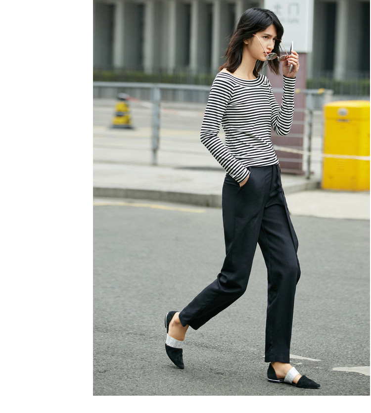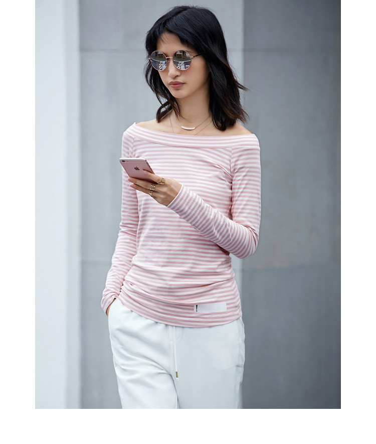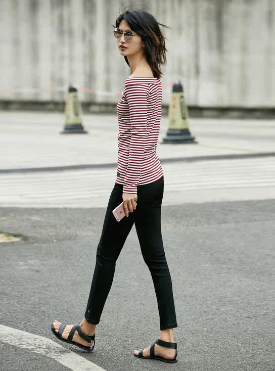 条纹衫与生俱来的时髦感与露肩一字领结合,