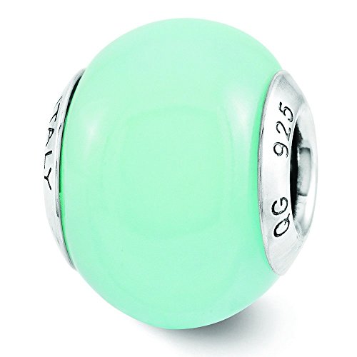 -. Title : Sterling Silver Reflection Teal Glow-in-the-dark Italian Bead Charm