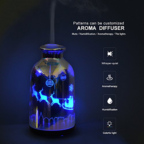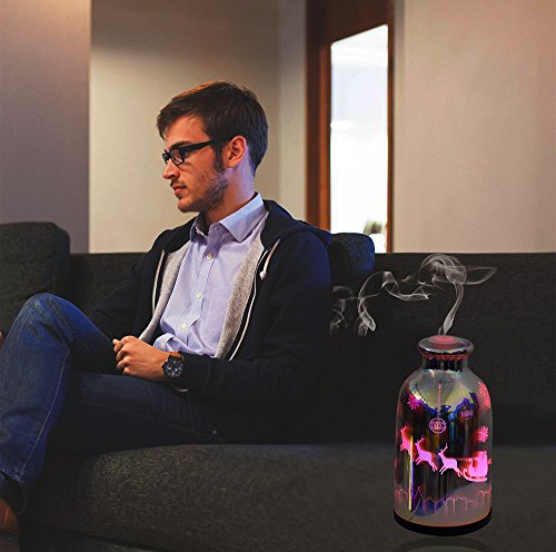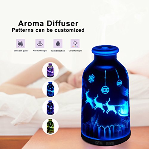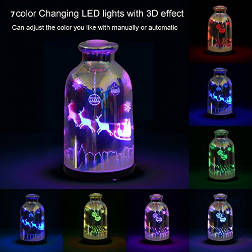 WOHOME Aromatherapy Essential Oil Diffuser,120ml 3D Glass Cool Mist Humidifier With 7 Color Changing LED Lights for Home Office Bedroom Living Room