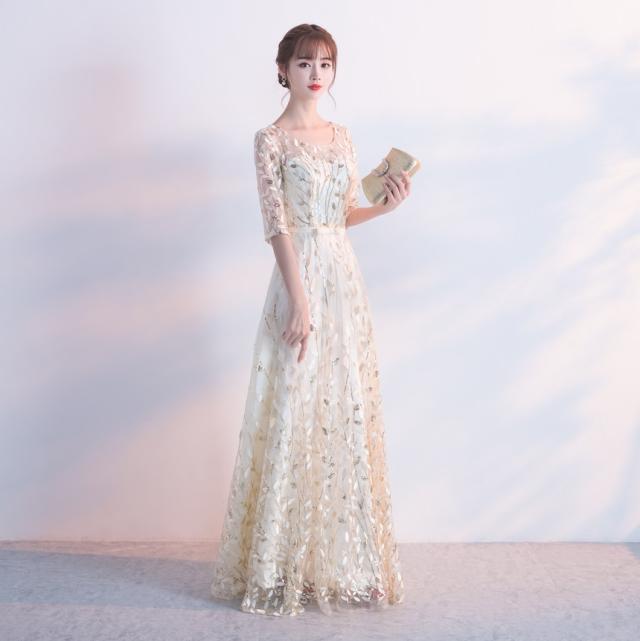 花柄 マキシ レース ロング スパンコール 刺繍 ドレス