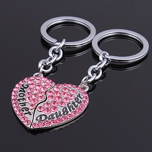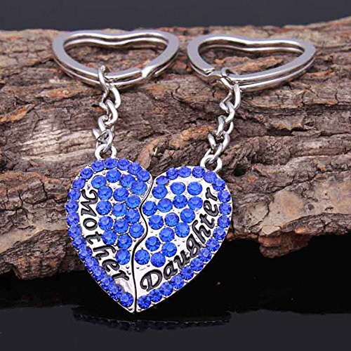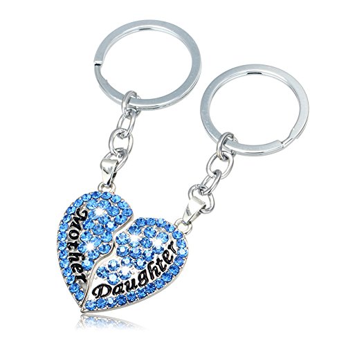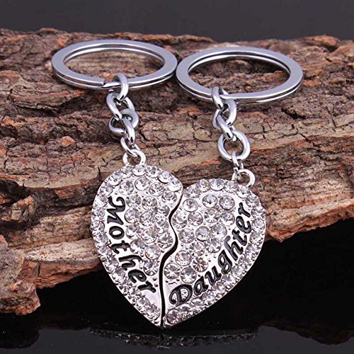 Mother Daughter Keychain Full CZ Diamond Broken Heart Engraved Letters Keyring
