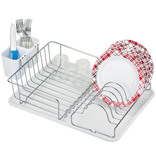 -. Feature : 3 Piece Set: Wire Rack, Draining Board and Cutlery Cup / Great Value! Dish Drying Rack Drainer Set 17" x 12" x 5" with Draining Board And Cutlery Cup / Rust-Free Chrome Coated Plate Rack with Slots, Sturdy to Hold Plates and Bowls UP.R.Ight and Safe / Includes Detachable Plastic Cutlery Basket and Draining Board, Dishwasher Safe / Large Capacity Tableware Organizer for Dishes, Knives, Forks, Cups and Kitchenware