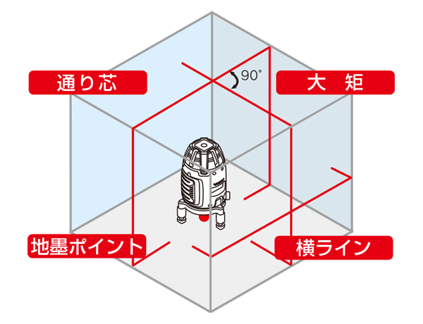 ●傾斜時警告 自動補正範囲を超えるとレーザー光が消灯