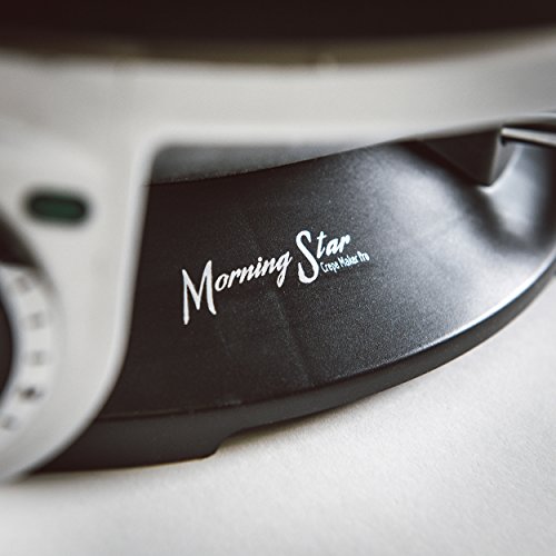 The Morning Star Crepe Maker Pro is a state of the art crepe maker perfect for any kitchen. With its sleek shape and cutting edge design, your crepes will never have tasted so good. Simply plug in the Crepe Maker Pro and set to your desired cooking temperature with its precise temperature dial. Spread your batter thinly with our spreader (included) and watch as your crepe or blintze cooks evenly to perfection in seconds. Our electric crepe maker features a 13" diameter surface allowing you more room to craft your ideal crepe. The non-stick teflon plate will provide you with easy cooking and clean-up. Wipes clean with cloth or paper-towel.Feature