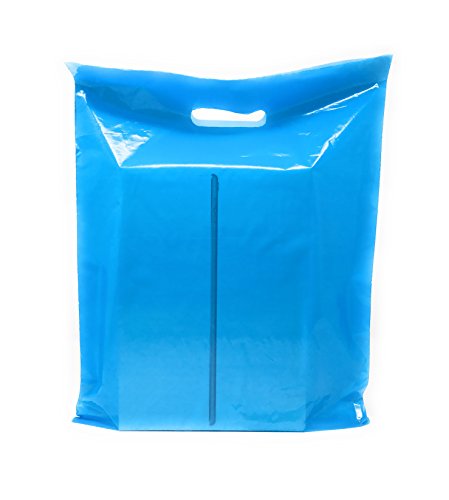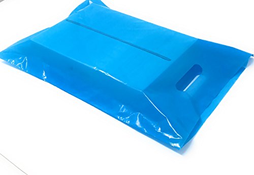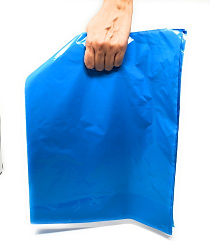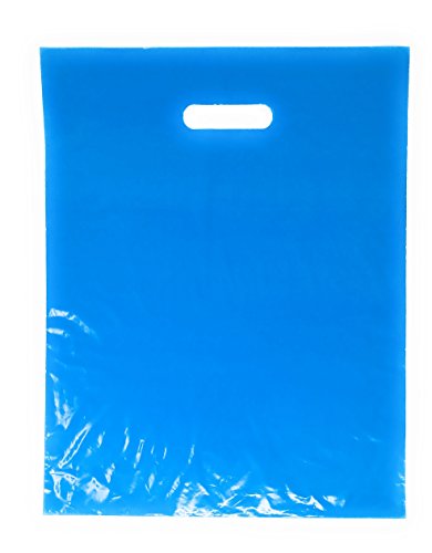 100 Pack 12" x 15" with 1.25 mil Thick Blue Merchandise Plastic Glossy Retail Bags | Die Cut Handles | Perfect for Shopping, Party Favors, Birthdays, Children Parties | Color Blue | 100% Recyclable